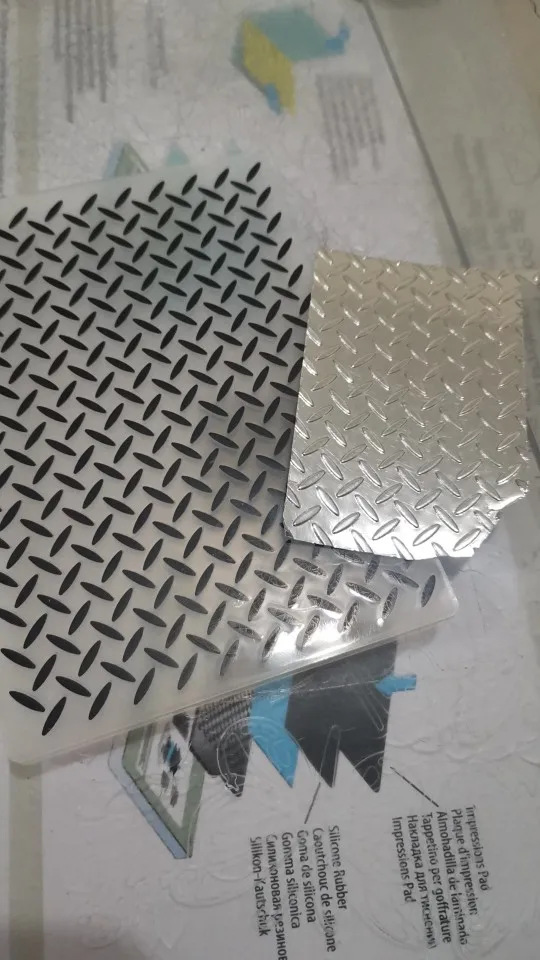 У фона с рисунком металлической пластины не совсем однородная заливка, но это не сильно заметно. Рекомендую брать бумагу плотную, от 250 гм и выше. Другую будет рвать.