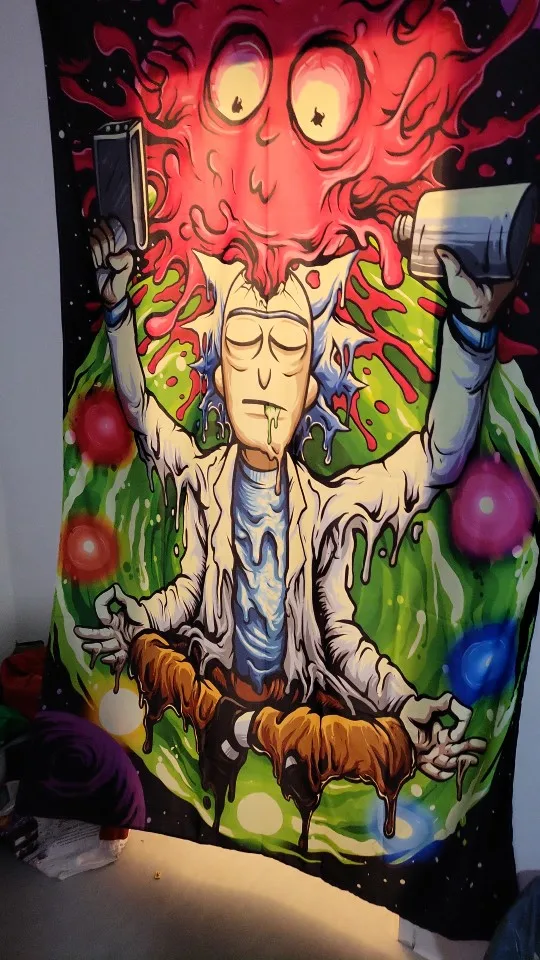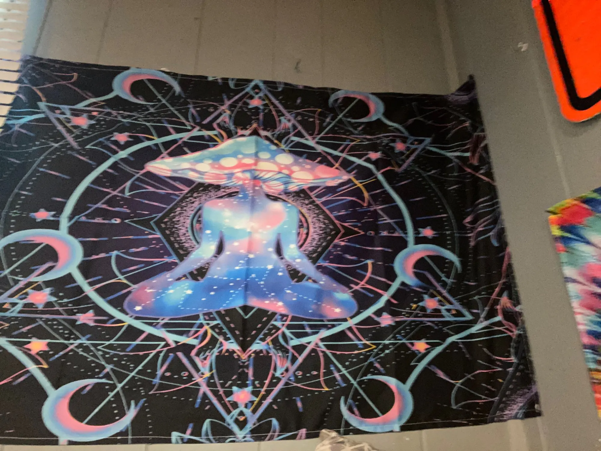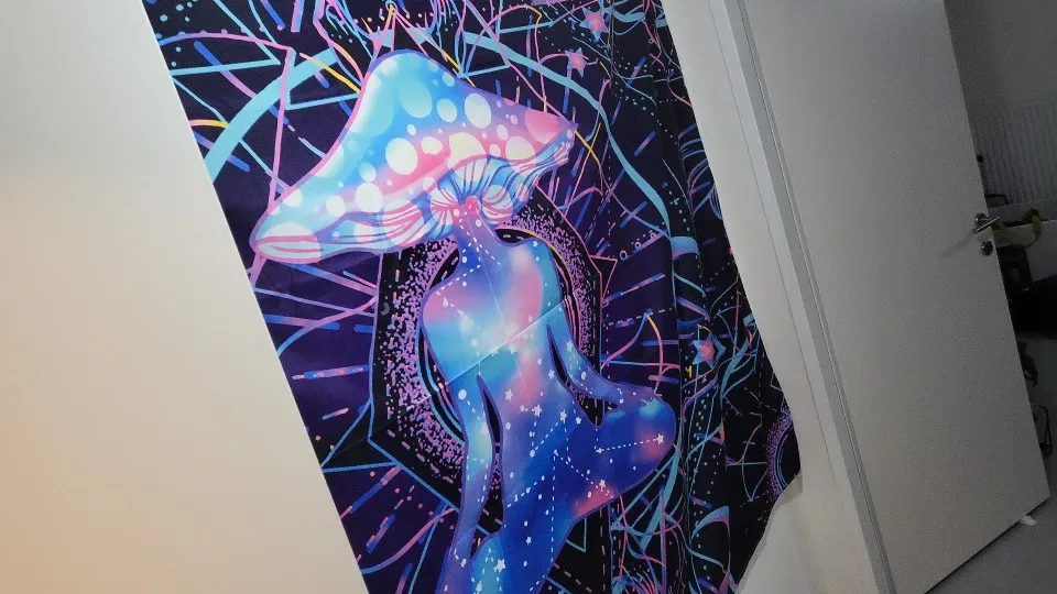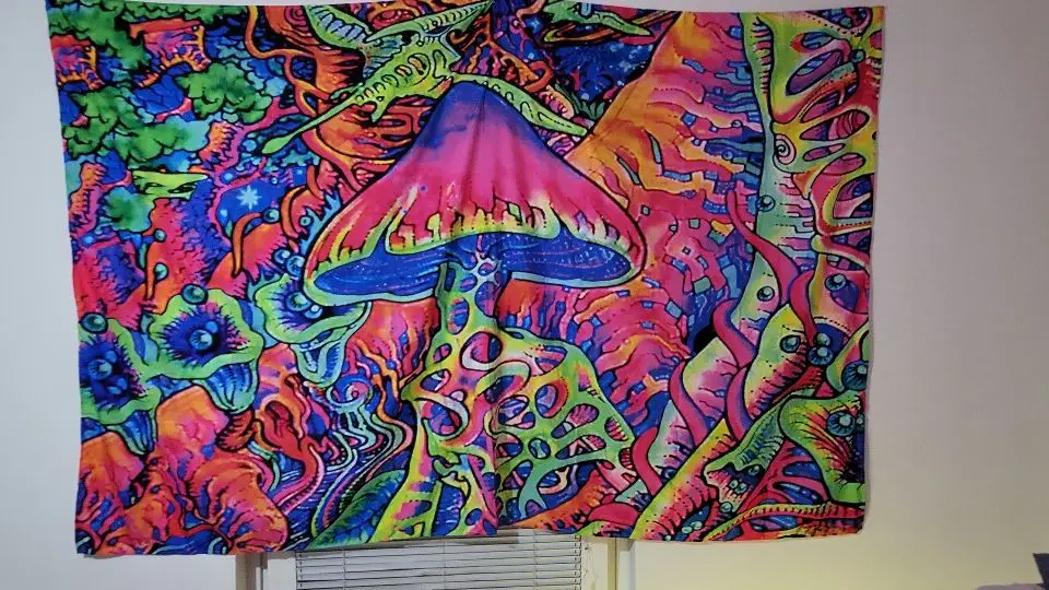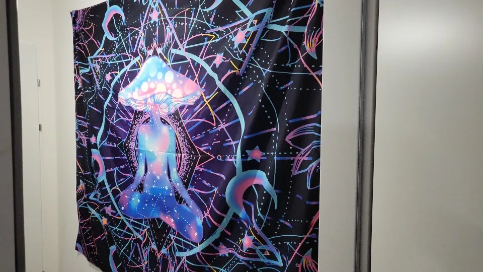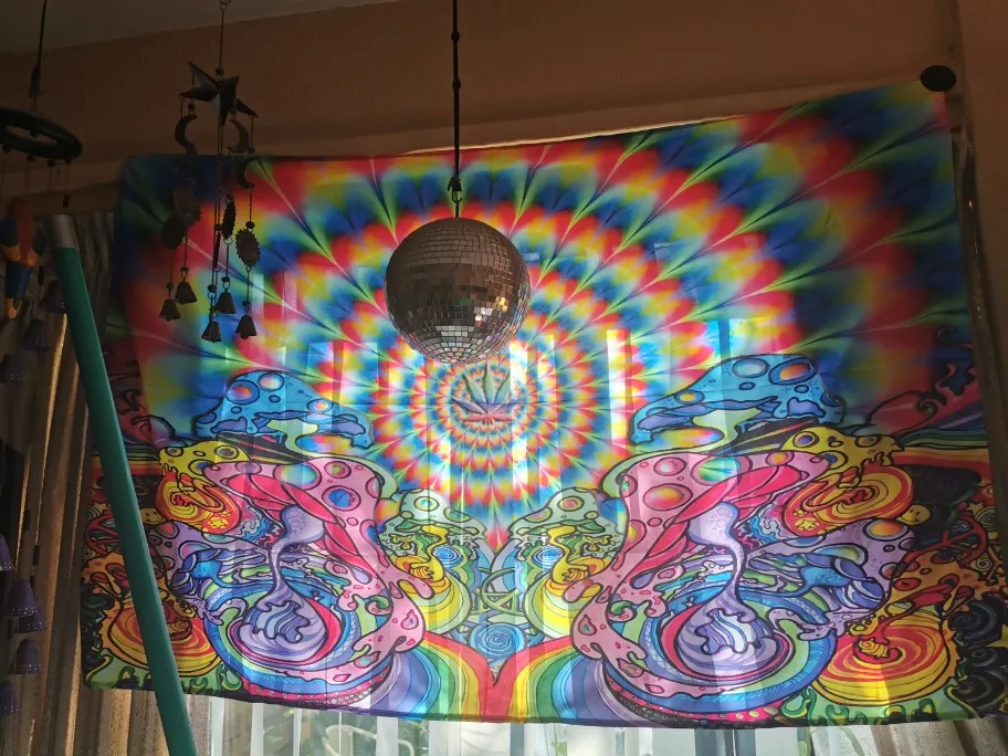 Гобелен с фиолетовыми цыганскими грибами, индийская мандала, настенный богемный психоделический гобелен