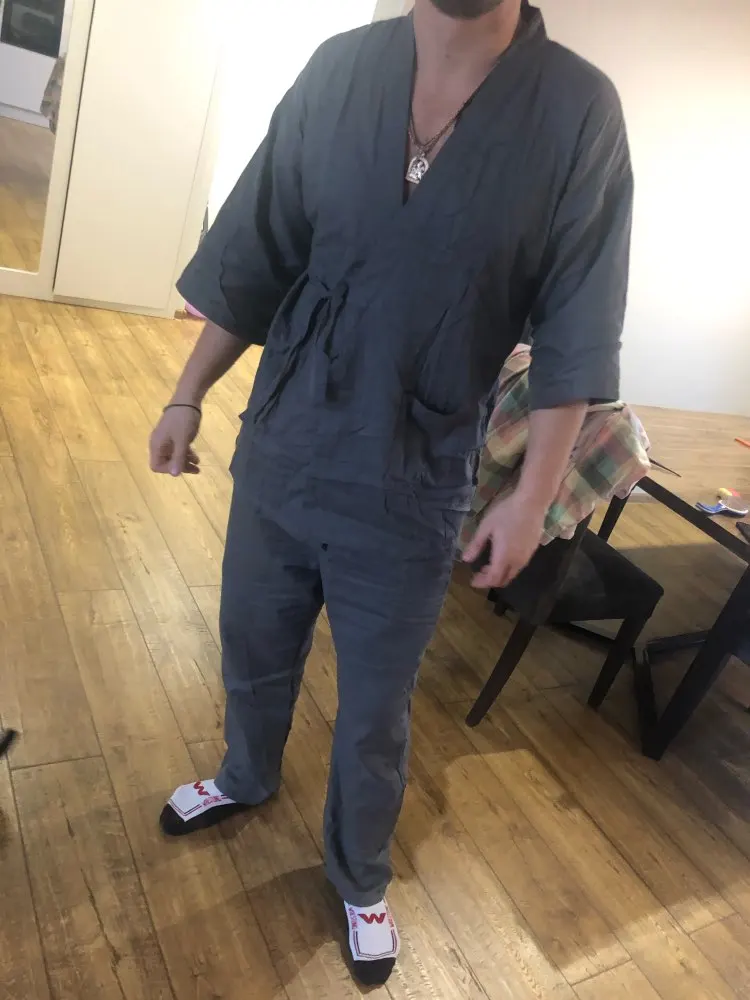 Горячая Распродажа, 100% хлопок, кимоно, мужской халат, пижамный комплект, простой халат с коротким рукавом, брюки в японском стиле для мужчин, ...
