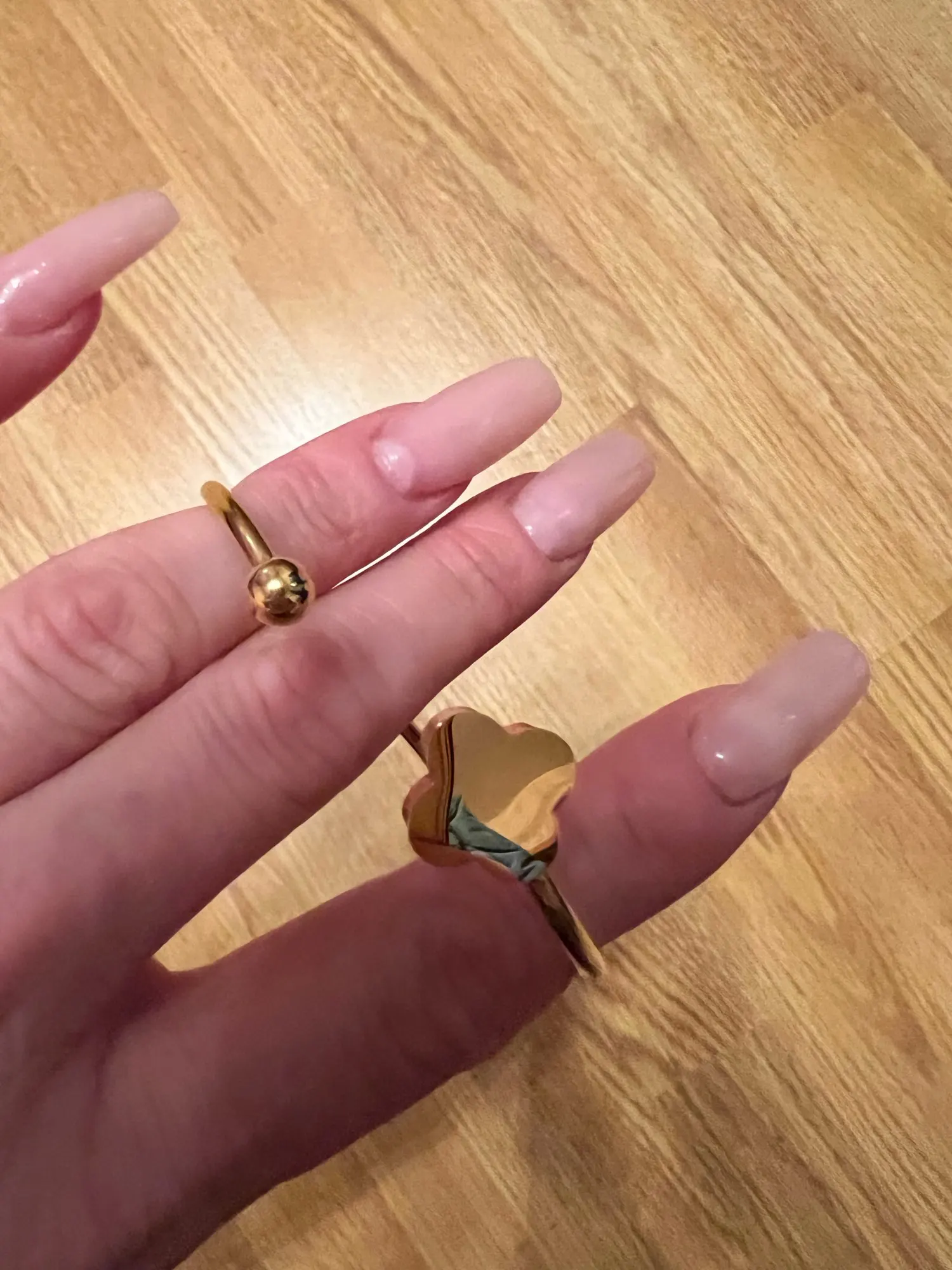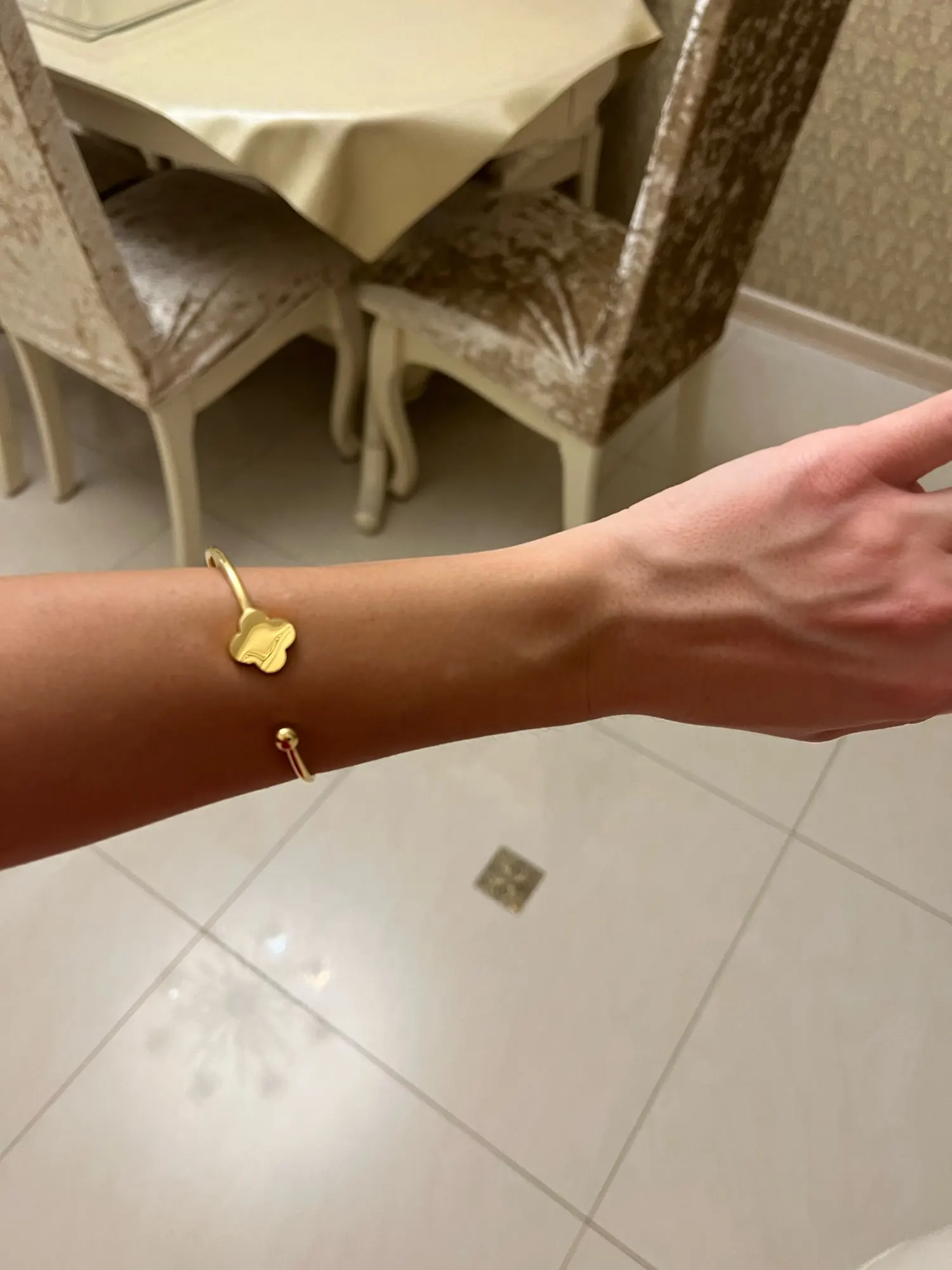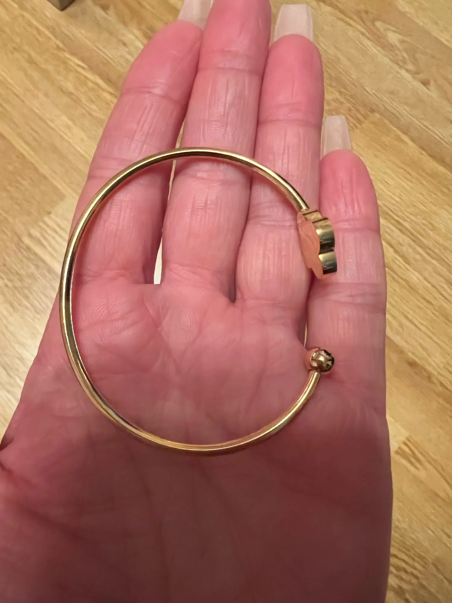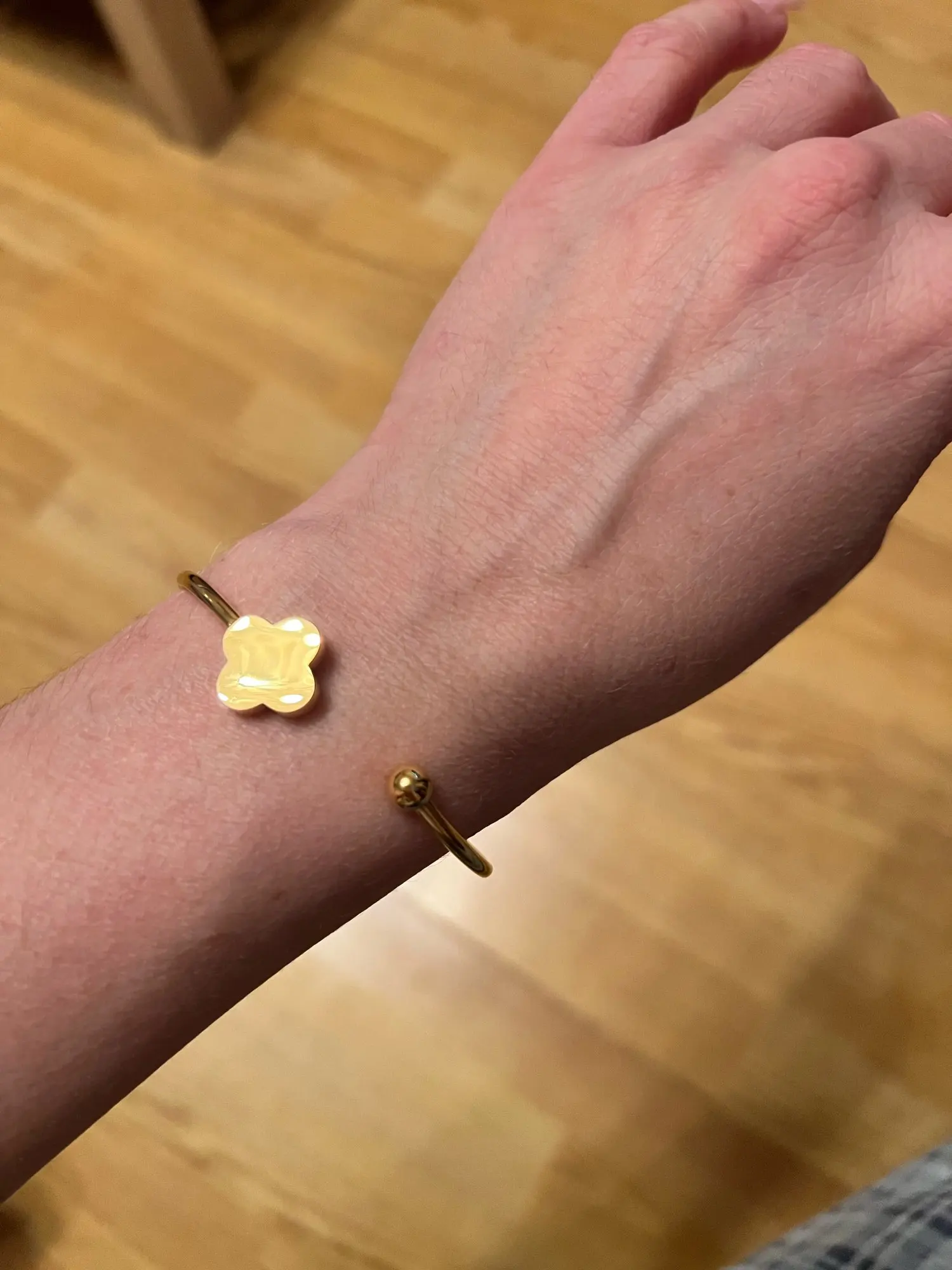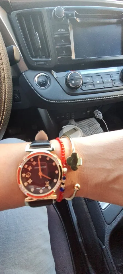 Всё как в описании довольно быстро было доставлено так что я довольна общением с продавцом и самим товаром. Выглядит дорого. Ношу уже довольно долго и пока ничего не облезло.