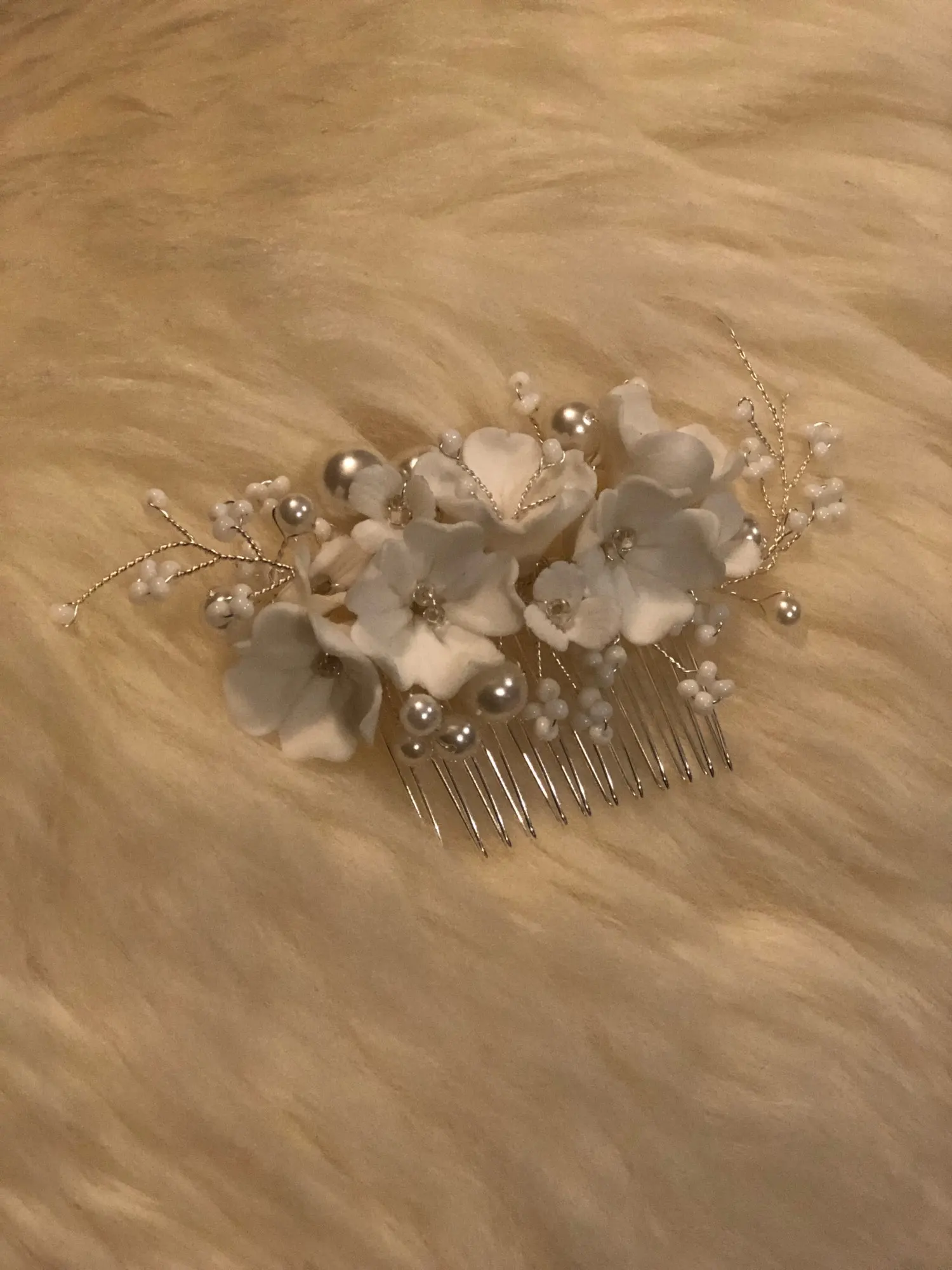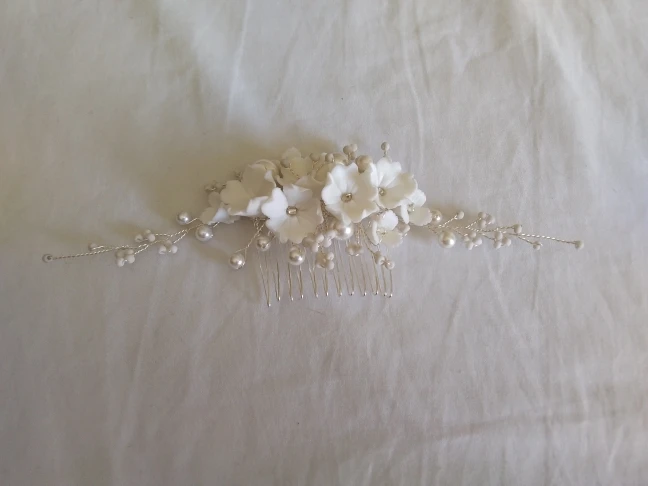 Гребень для волос с жемчугом Женский, свадебное украшение ручной работы с белым фарфоровым цветком, свадебная бижутерия