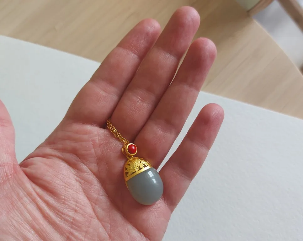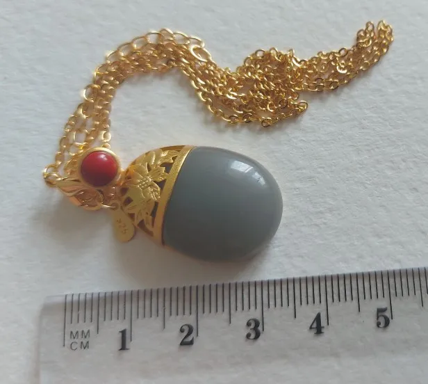 (Hetian) нефрита, фиолетовый нефрит Овальный и отделкой в виде лотосов кулон ожерелье Китайский Стиль в ретро-стиле; Элегантные светильник фон для фото с изображением кожаного серебряные ювелирные изделия