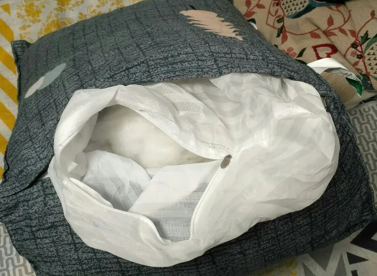 В общем, впечатление положительное. Ткань не тонкая, внешне приятная и смотрится хорошо. Молнии имеются и на чехлах и на внутреннем мешке с наполнителем . Все можно постирать. С правой стороны чехла, есть кармашек для телефона. Единственное, набивка на фото продавца, как минимум в 2 раза больше реальной. Из-за этого, форму как на обложке не держат. В остальном, все отлично. Так как есть доступ к наполнителю, то при необходимости можно добавить.