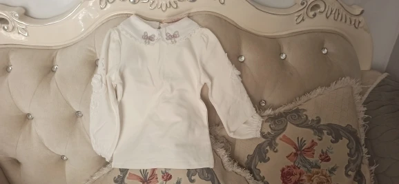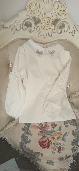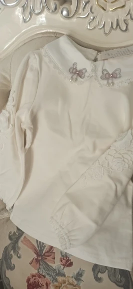 Хлопковая одежда для малышей, весна-осень, блузка принцессы для девочек, белая кружевная рубашка с длинными пышными рукавами и круглым вырезом для девочек, детские топы, футболка