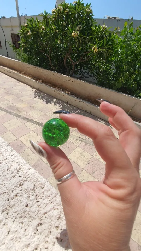 Пришла посылка быстро! Меньше месяца. Шарик слегка поцарапан (на складе, скорее всего), но это ерунда. Немного расстроилась в размерах. Меньше, чем думала. А так он красивый! Можно позалипать.