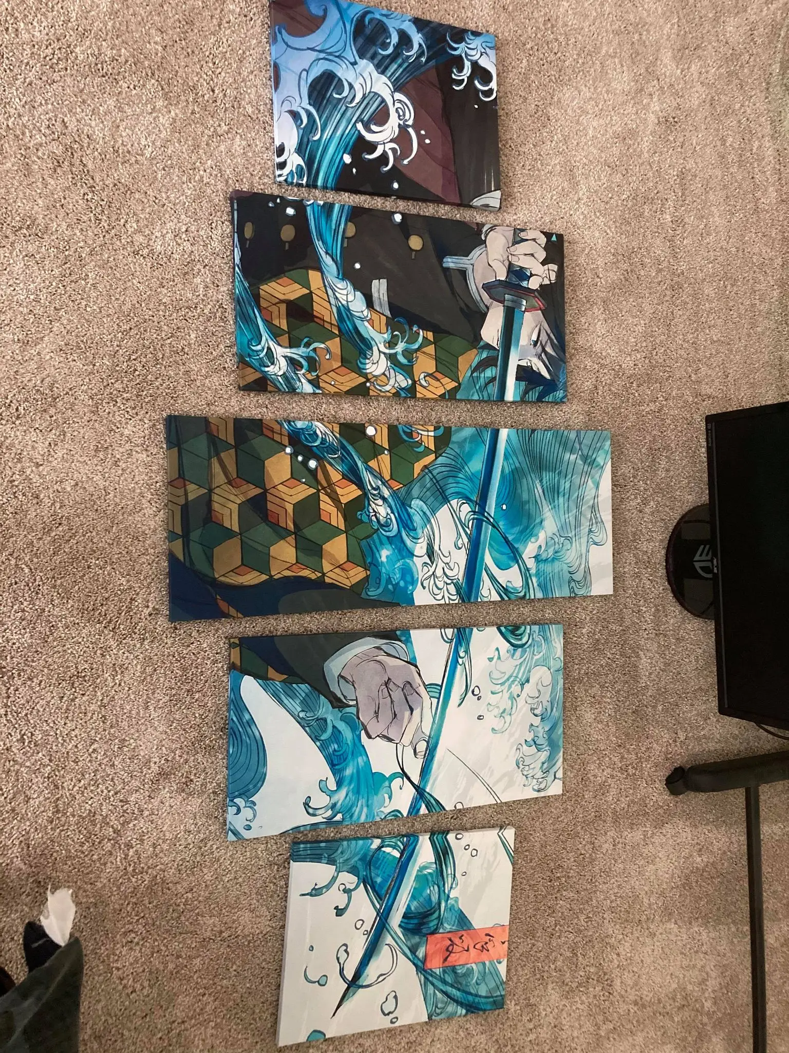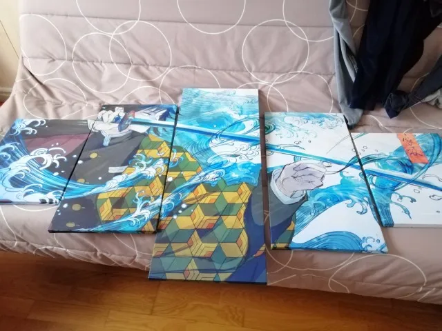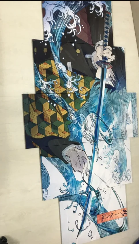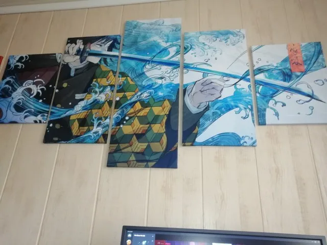Художественный Настенный декор, картина из 5 панелей HD, японское аниме, мальчик, картина Tomioka Giyuu, демон, убийца, постер, анимация