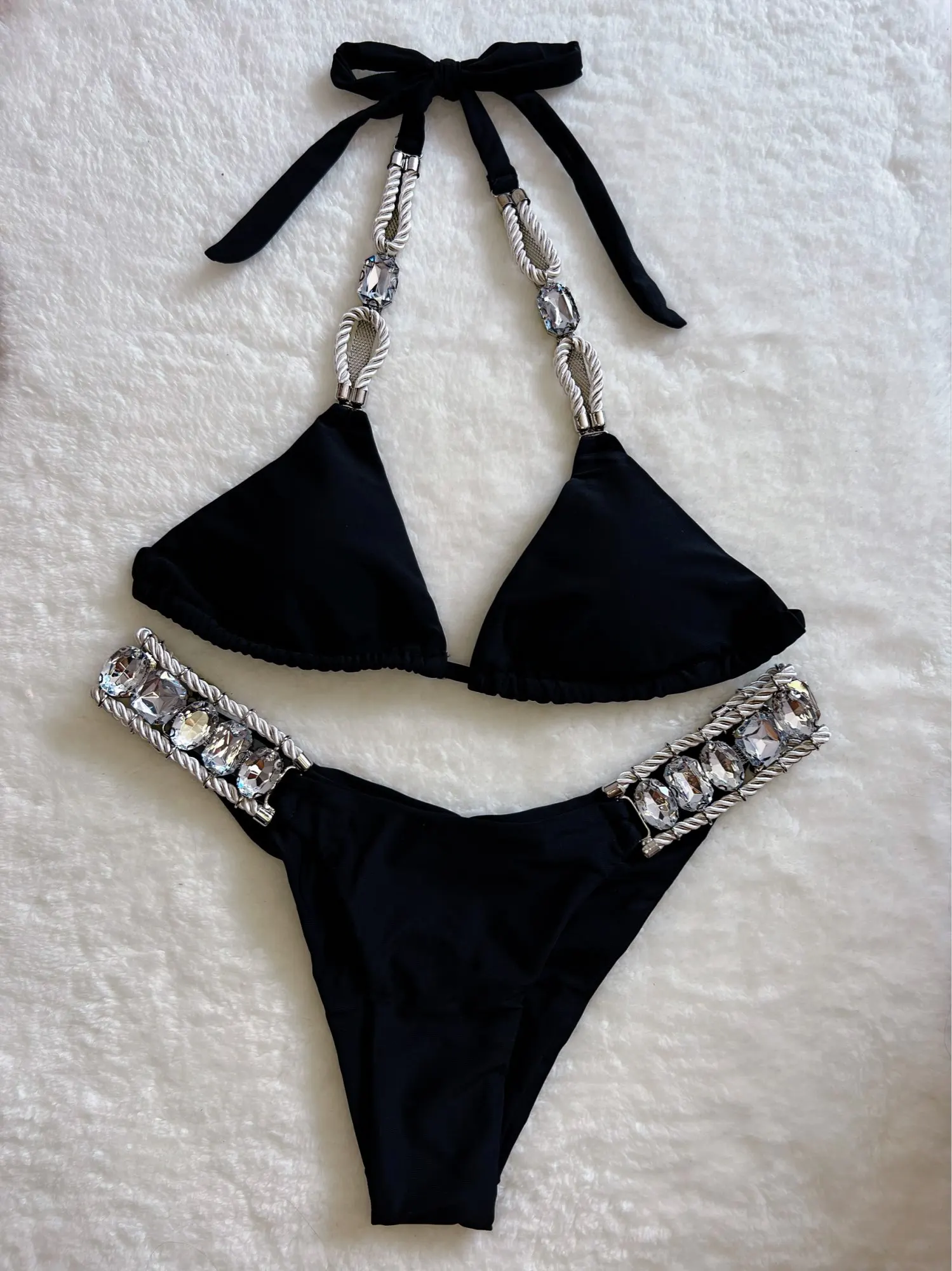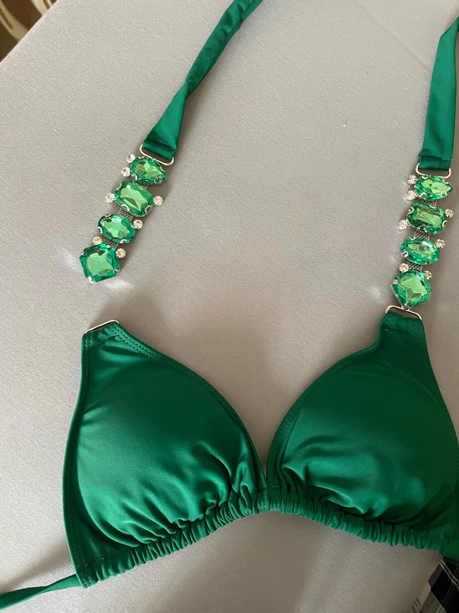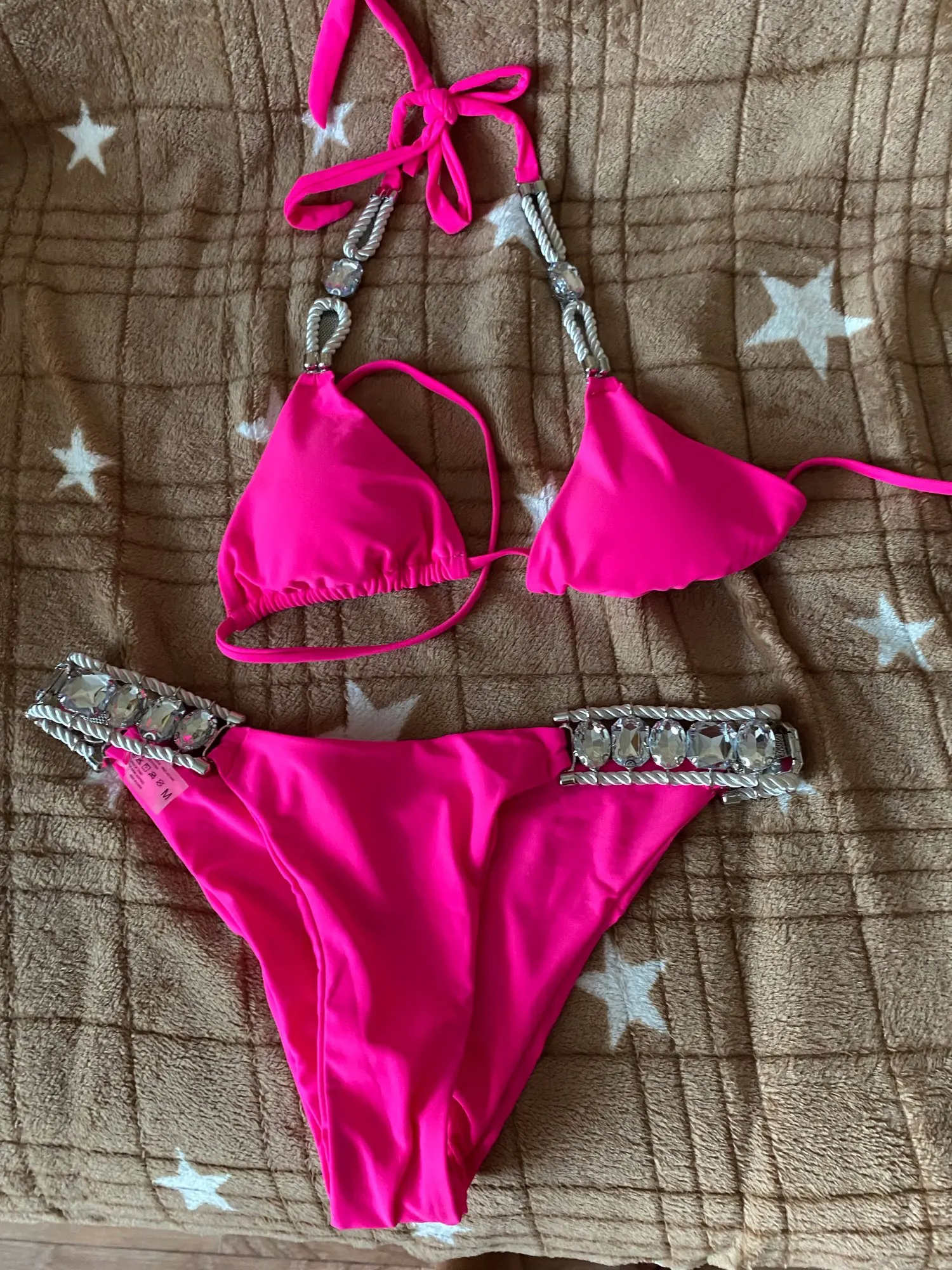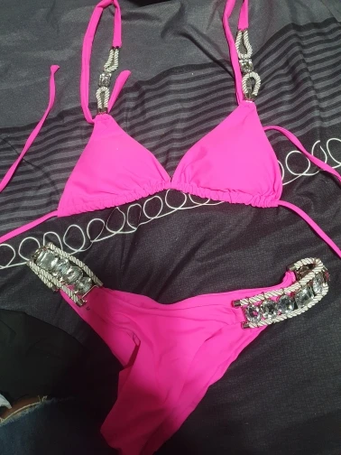 Хорошего качества , все стразы смотрятся дорого. Трусики буду ушивать. Хороший купальник
