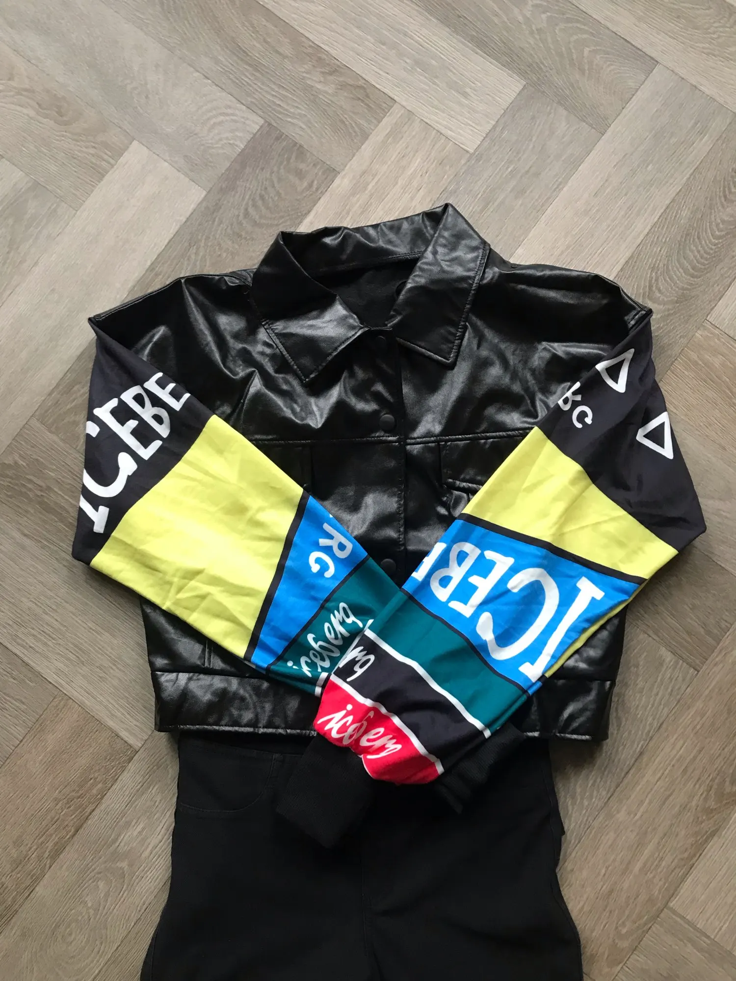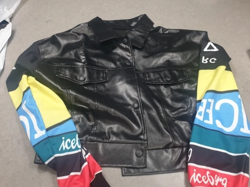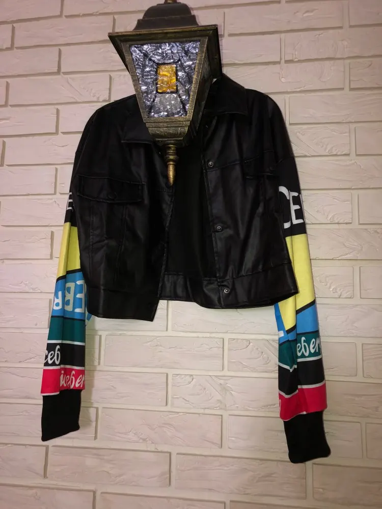 очень очень тонкий дермантин, через пару раз порвется однозначно. Рукава не вязанные а просто синиетика. на троечку. Но по фигуре и сидит нормально