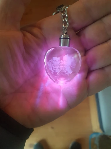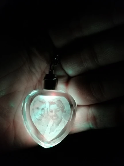 не видно фотографии, цвет прозрачный и белым нанесено изображение, очень надо постараться что бы рассмотреть фото, а так просто симпатичный брелок и все. не соответствует фото на сайте, там видно что контур темный и все просматривается хорошо. вобщем разачарование!