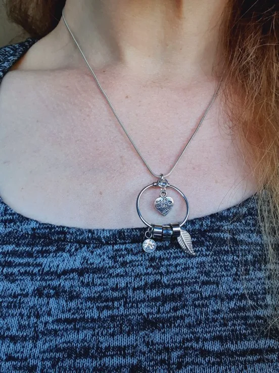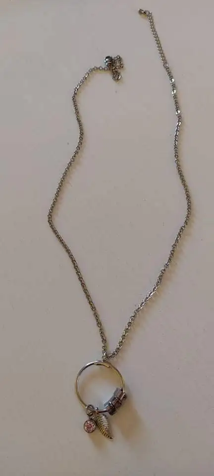 все как на картинке. цепочка и листик не их нержавейки, а вот сам кулончик хорошего качества.