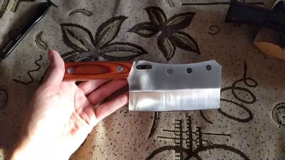 В деле ещё не попробовал, но внешне нож понравился. Сразу обратите внимание на длину- он короткий, но увесистый. Думаю, для городской квартиры в самый раз-туши рубить не надо, а ребра для рагу а самый раз.