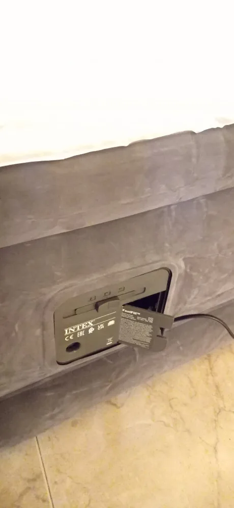 INTEX Fibertech комфортный плюшевый надувной матрас с насосом 152x203x46 см, двойная воздушная кровать с чехлом, Чехол для кемпинга серого цвета