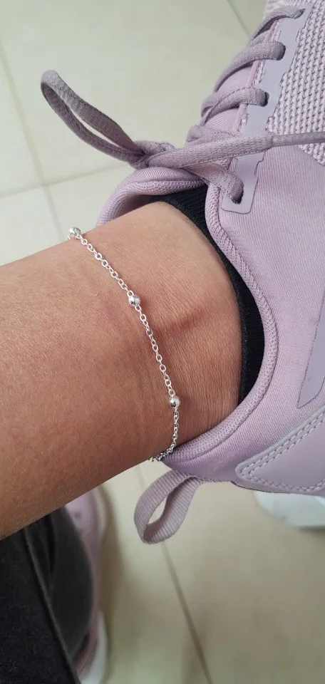 Посылка пришла супер быстро. Браслет блестящий, красивый, нежно выглядит на ножке. Можно одевать по одному или сразу два. Покупкой очень довольна.