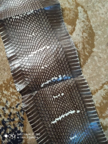 Всё, как на картинке, ширина точно 12 см, длина 120 см. Пришло почти за месяц, упаковано в картонную коробку, всё целое. Кожа тонковата, буду думать чем укрепить, потом сошью чего-нибудь, может ремень (вроде попроще), а может сумочку. Продавцу спасибо!