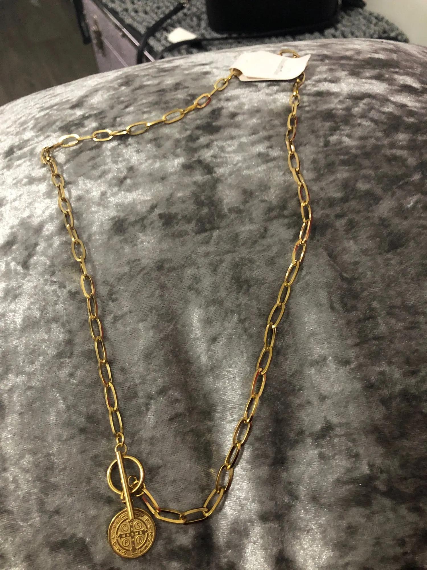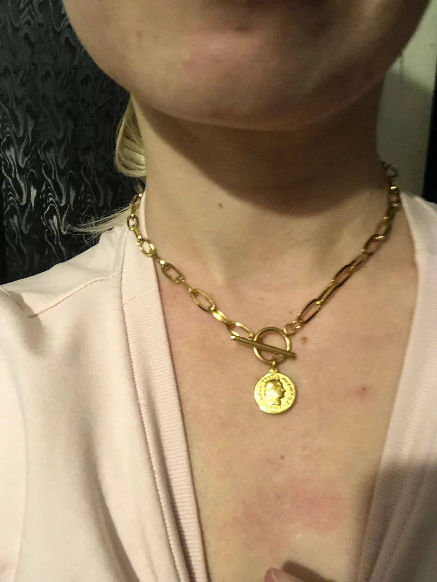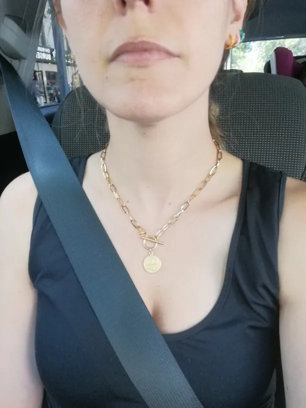 Из нержавеющей стали для женщин Lucky монет Пенни футболка с длинным рукавом и надписью бар колье-чокер золотой цвет переключения кулон ожере...