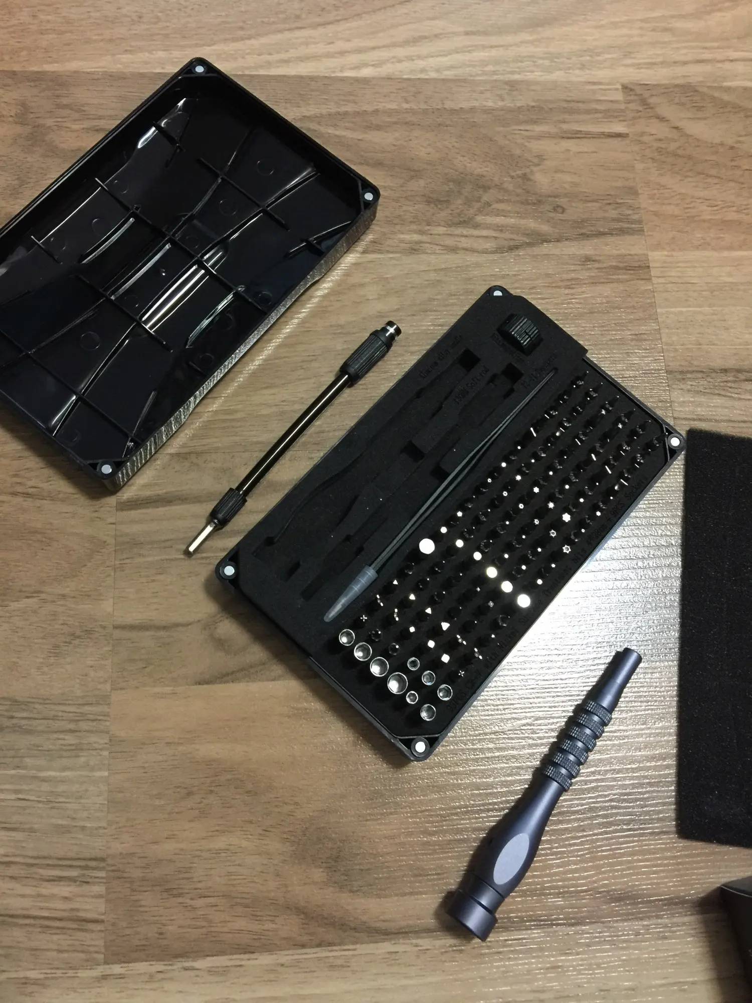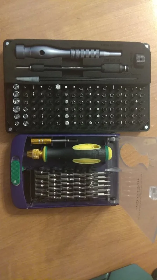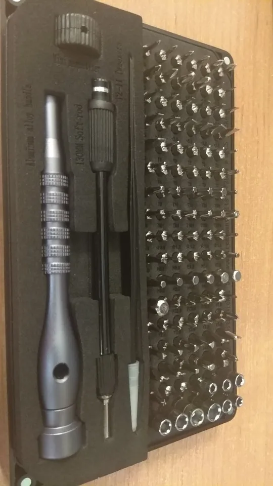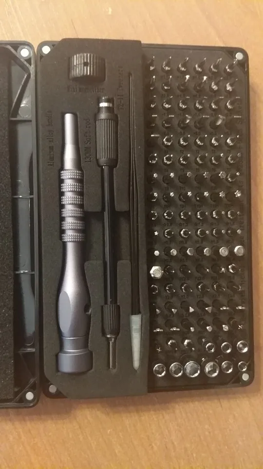 Взял за 900 р. с чем-то на распродаже. Плюсы: богатый набор бит из хром ванадия; есть повторяющиеся наиболее часто используемые и применяемые биты; поролон и биты промаркированы; классная металлическая отвертка с плавной шайбой, видимо на подшипнике; крышка на магнитах, что подразумевает надёжность и долговечность; твердый и толстый пластик корпуса. Минусы: чехол не прозрачный; крышка его хоть и на магнитах, но доступ к инструментам не очень быстрый; паролон, который держит и биты и все остальное хоть и довольно крепкий, но не самое долговечное решение; некоторые биты плохо сидят и вываливаются при малейшем переворачивании набора с самого начала; несколько бит попались с маркировкой отличающейся от маркировки в паролонке; можно было положить парочку бит PH размера +5.0, так как этот тип очень часто используется; гибкий удлинитель качества "так себе/лишь бы было"; нет обычного удлинителя, хотя даже в дешёвом китайском он есть.