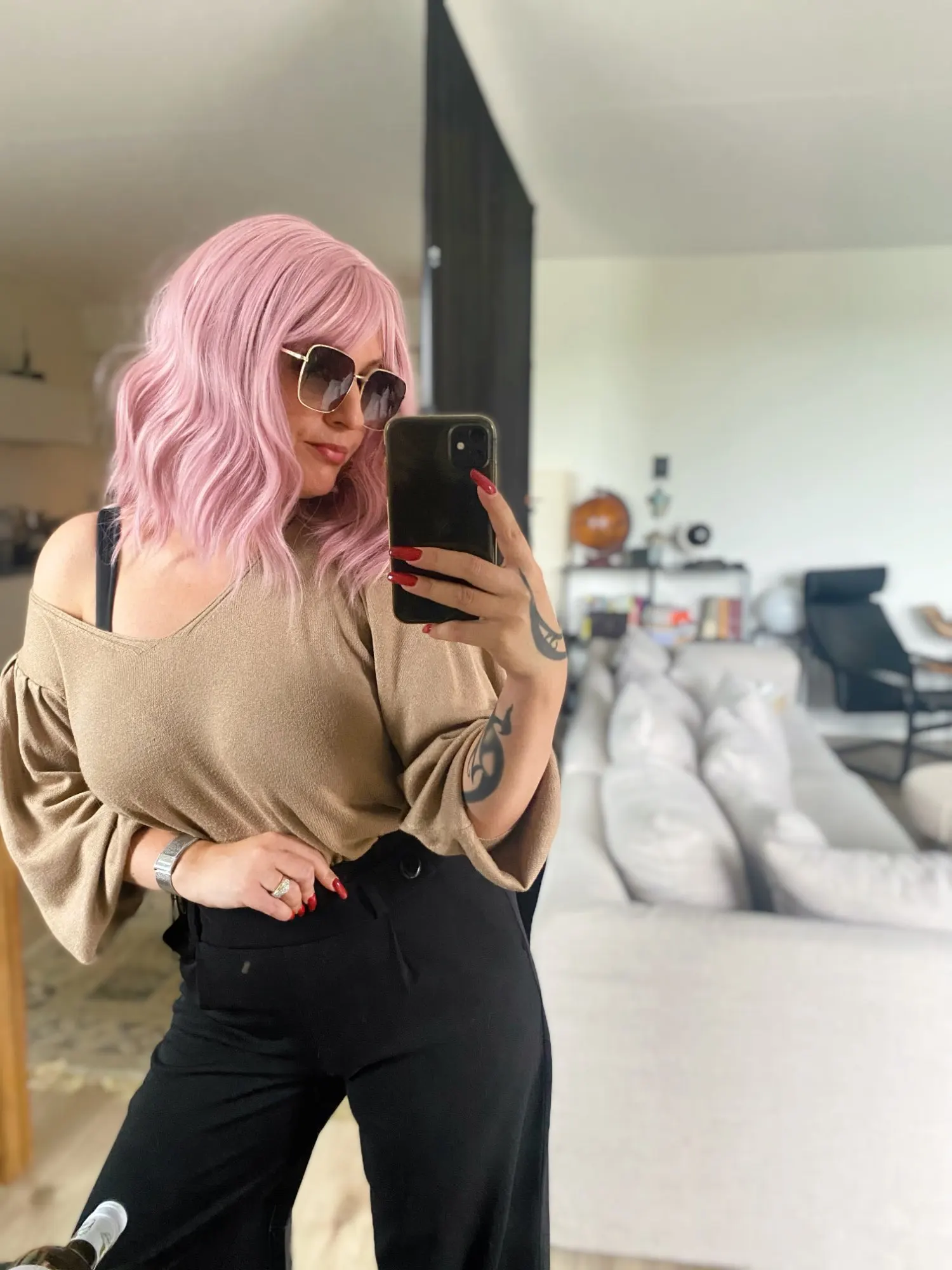 Парик ужасный, на голове просто копна синтетических волос, очень много и некрасиво, держится плохо, чёлка маленькая, выглядит ужасно, только на маскарад или хеллоуин.