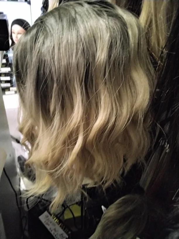Выиграла за цент и монетки, спасибо продавцу! Красивый искусственный парик с челкой и волнами. Цвет чуть темнее, чем на промо фото, и волны изначально крупные. Длина чуть ниже плеч, челка длинная, простор для моделирования есть большой. В русских квартирах с центральным отоплением электризуется неслабо, вроде лак для волос помогает немного от этой проблемы.