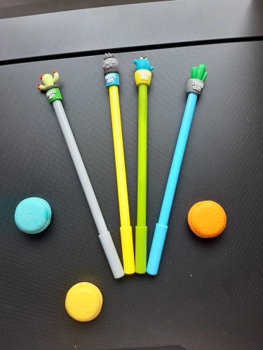 Хорошие гелевые ручки. Как на фото. 40 шт. По 10 штук каждого вида. На стержне колпачки. Цвет чернил чёрный. Все не проверяла, штук пять попробовала, пишут хорошо. Про трек сказать не могу, несколько товаров упаковали в одну посылку. Заказала 18.10, пришел 06. 11