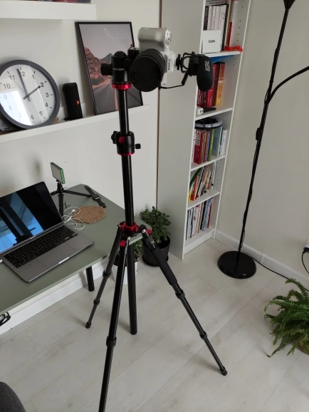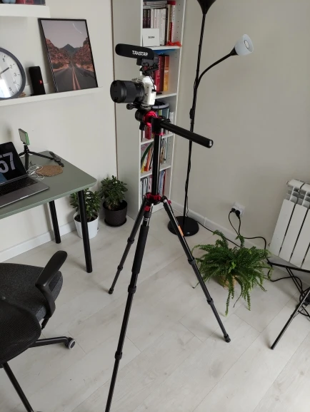 Очень крутой штатив, можно камеру поставить на абсолютно любую высоту, от самой земли до почти 2 метров. Лёгкий, во влагостойком чехле с мягкими вставками. Ход штативной головки плавный, всё хорошо смазанно. Присутствует небольшой люфт на защелках ножек, но на функциональность не влияет.