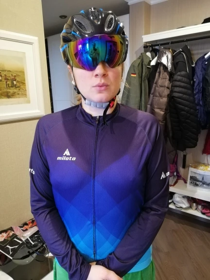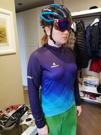 Красивый. Ткань приятная, очень тонкая и легкая. Это именно майка. Сомневаюсь, что она хоть сколько держит тепло, но посмотрим.... Расстроило то, что сразу , при примерке, разошелся замок снизу. Перезастегнула - вроде держит. Но не знаю как будет держать при активной езде... Головка замка крошечная, пластмассовая, мелкая. Как-то казалось, что у спортивной одежды понадежнее замки должны быть. Очень ждала эту вещь, но разочарована. Оказалось, просто яркая тряпочка для "пофасонить". Цена совершенно не оправдана.