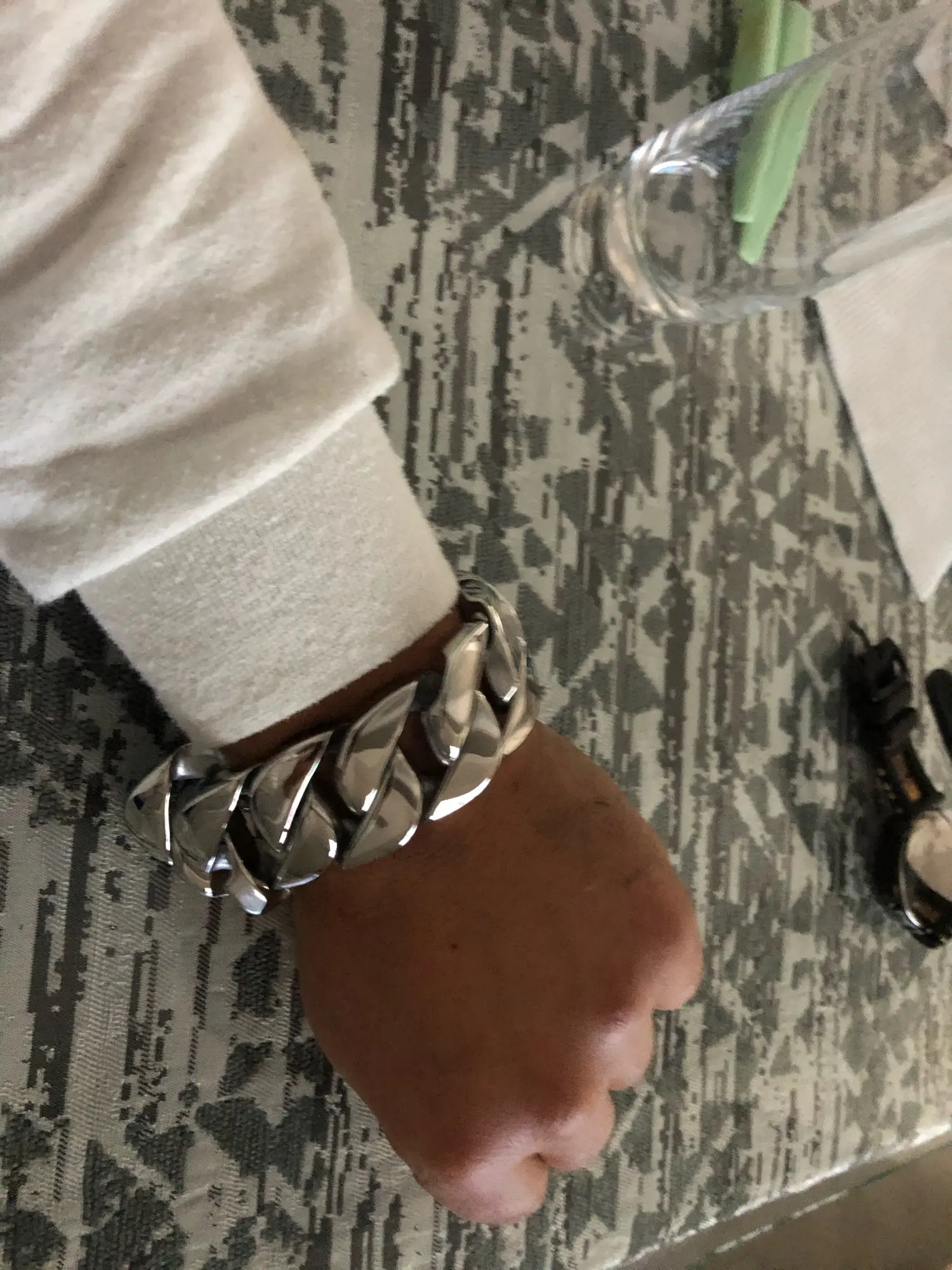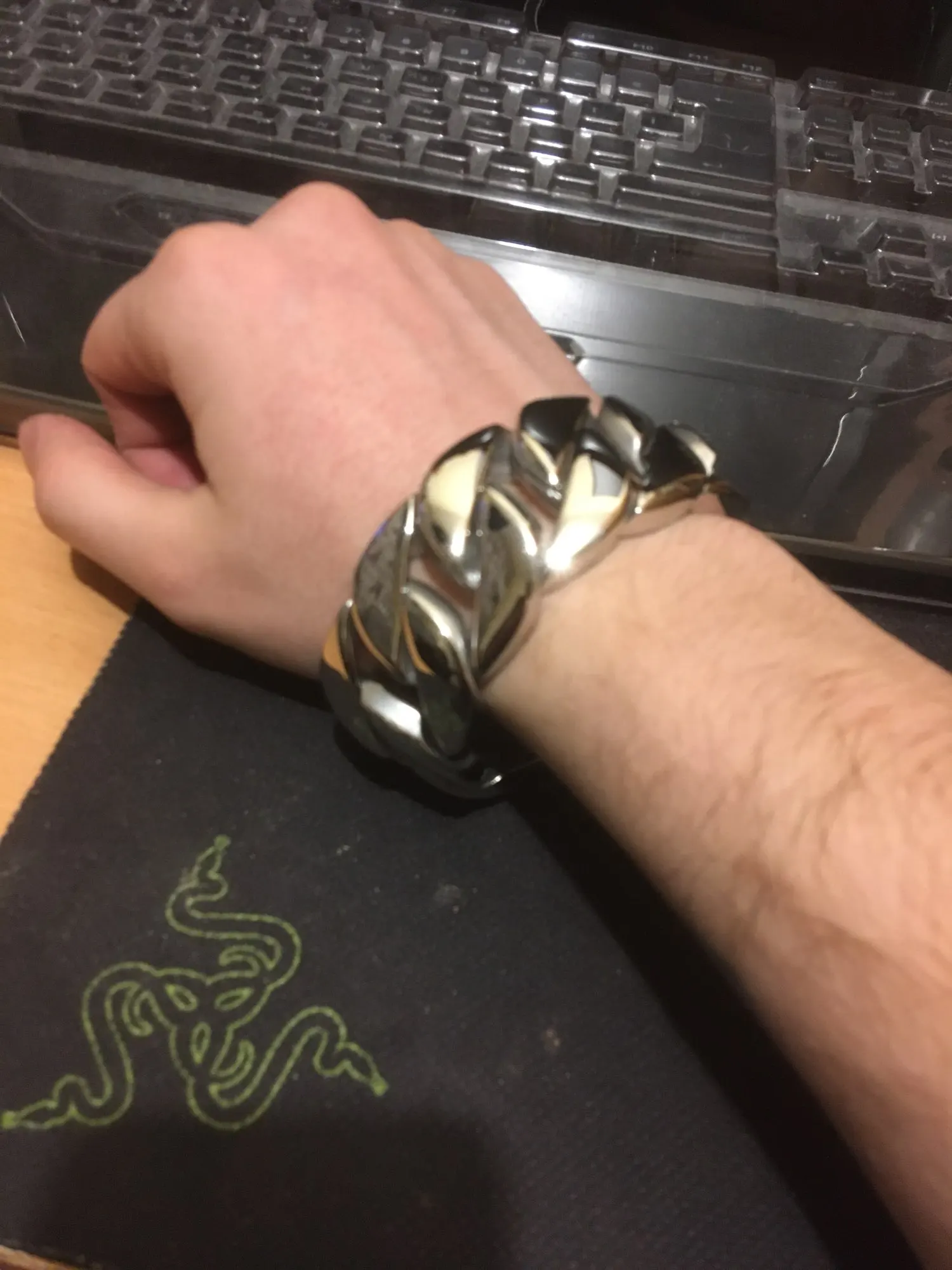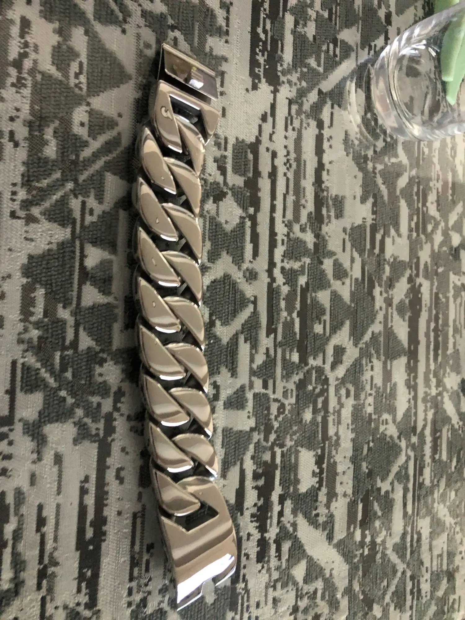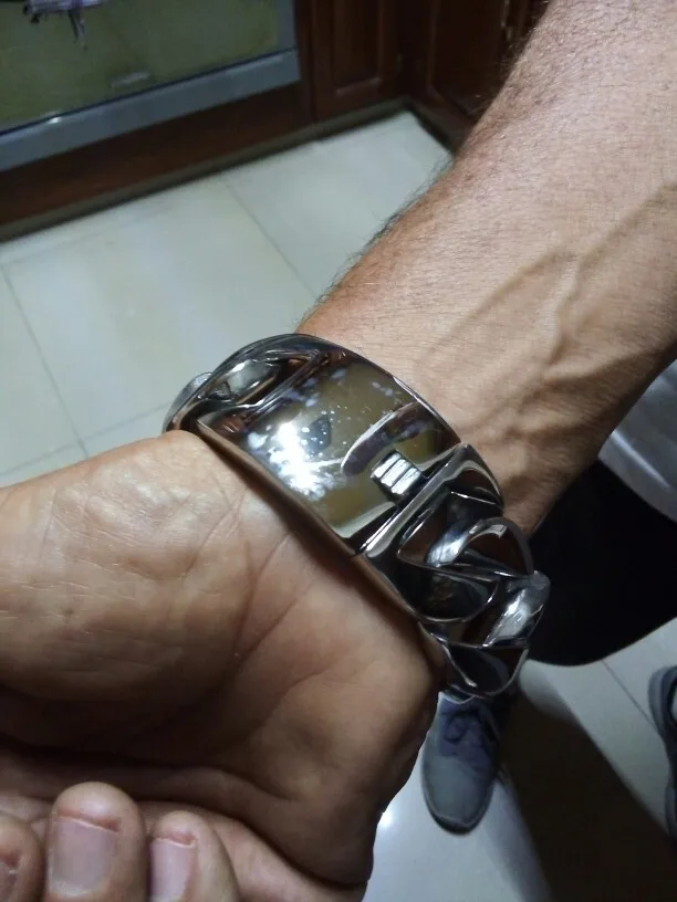 Браслет тяжёлый, блестящий, хоть и шумный маленько, зато выглядит отлично