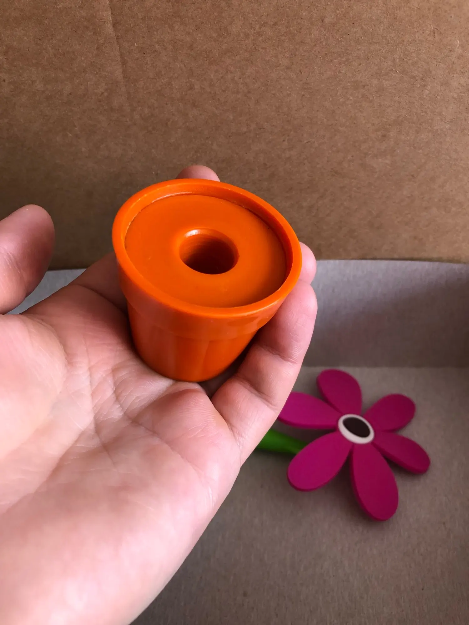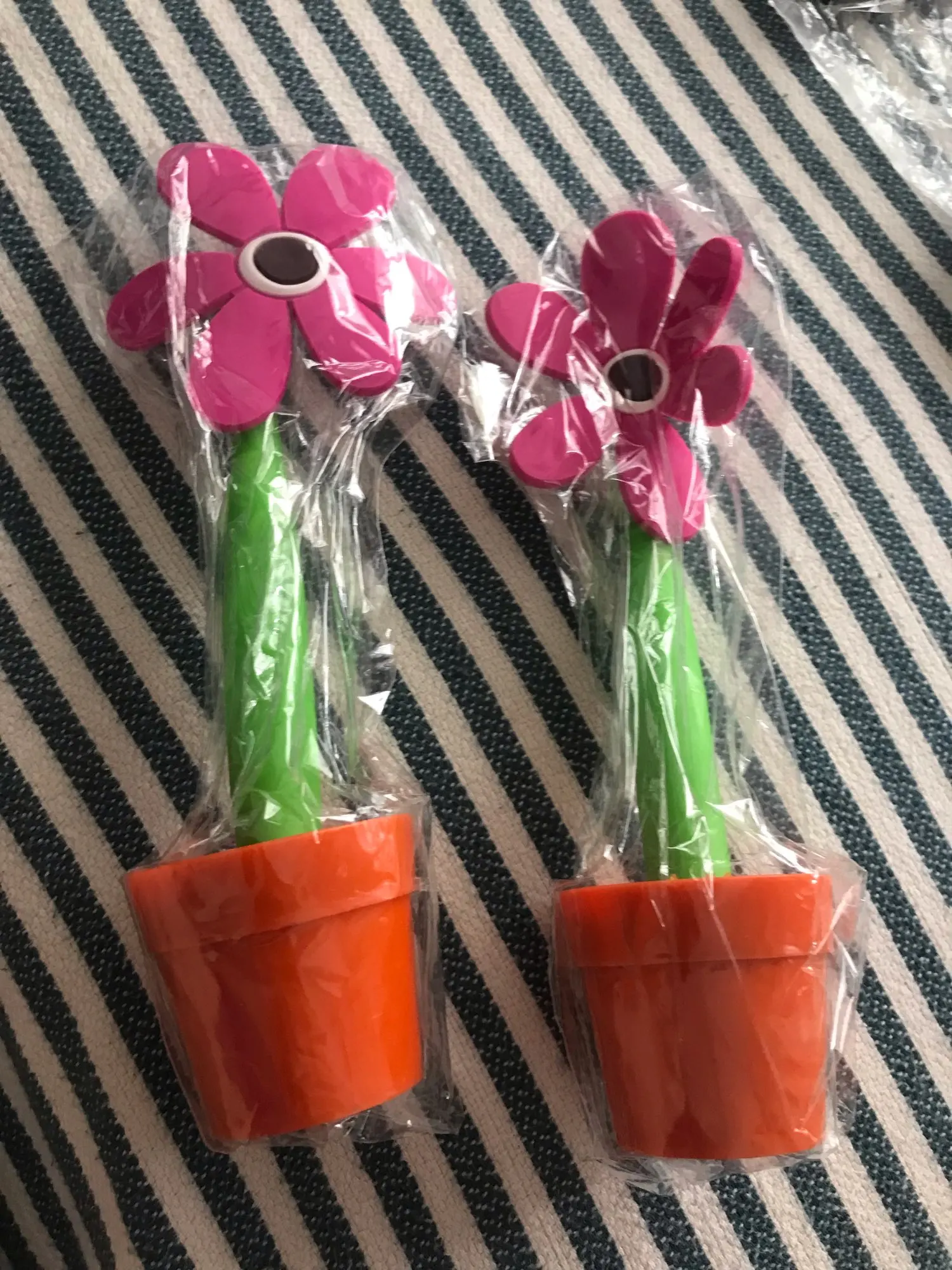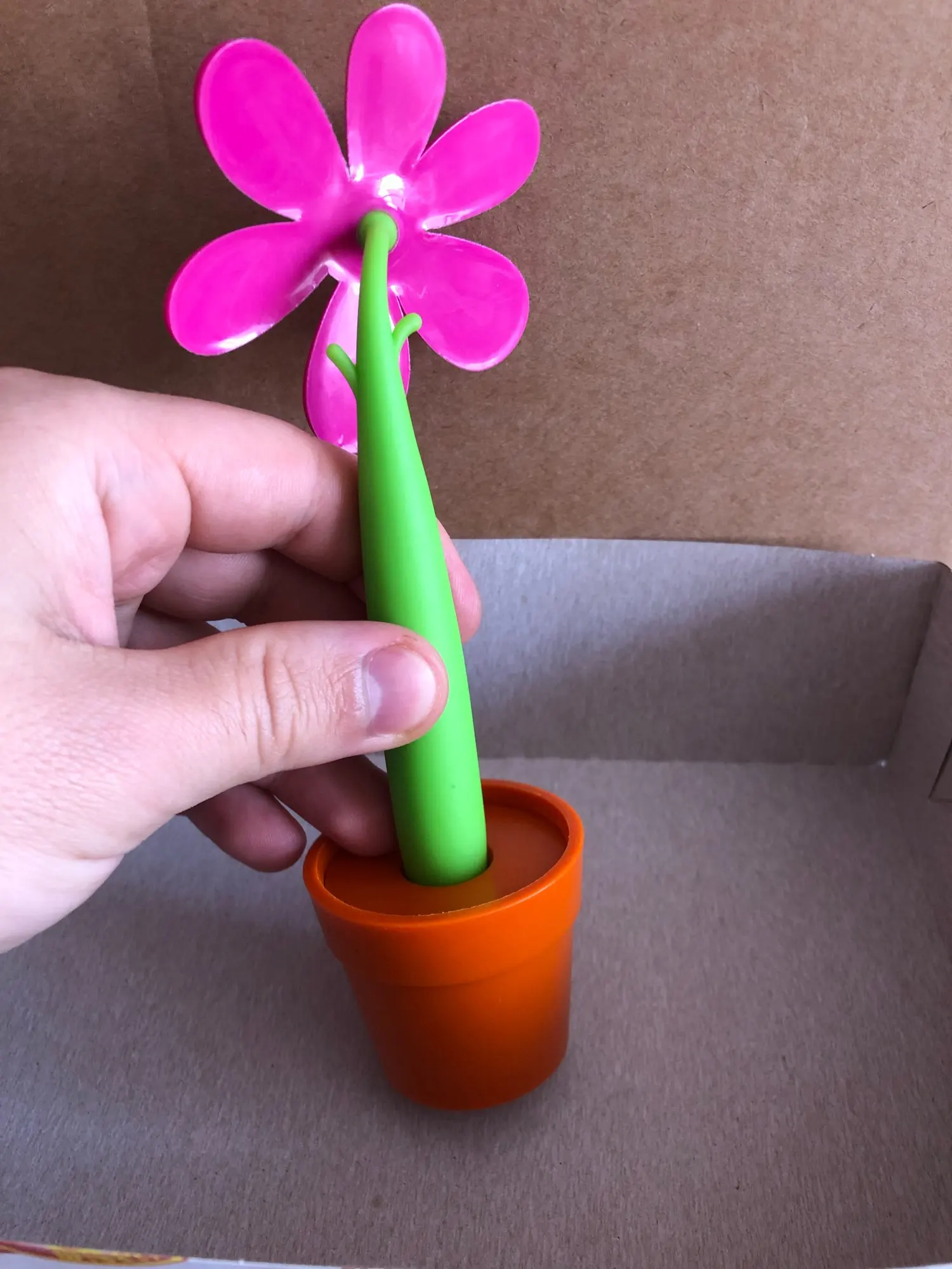 Интересная шариковая ручка, стилизованная под домашний цветок в горшочке. Доставка заняла около 20 дней, что в текущей ситуации очень даже быстро. Товар был упакован в обычный почтовый пакет и обмотан пупырчатой пленкой. Все три заказанные ручки пришли целыми, но из-за плотной упаковки некоторые лепестки погнулись. Горшочки и стебель (он же корпус ручки) выполнены из пластика. А вот сами цветки изготовлены из резины и от них исходит не очень приятный запах. Цвет, кстати, отличается от фото продавца - он не такой насыщенный. Высота цветка вместе с горшочком около 18 см, диаметр самого горшочка около 4 см, а ручки 1 см. Внутри самая обычная шариковая паста синего цвета, причем пишет она довольно толсто. Пасту можно заменить, для этого достаточно снять колпачок в нижней части ручки. Синий цветочек пришел с браком литья на корпусе и не держится в горшке, также на всех цветках есть облой, особенно между лепестками. Для своей цены очень даже неплохо, но хотелось бы контроль качества получше.