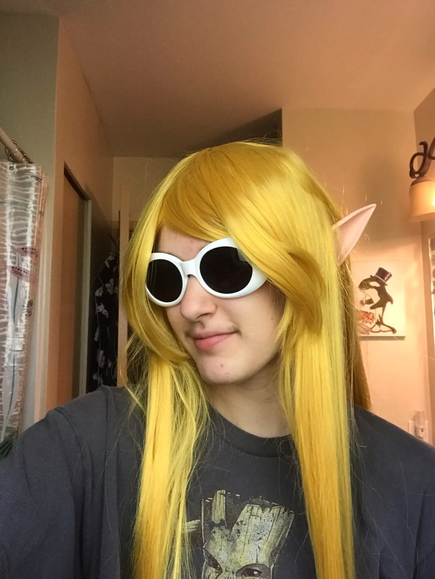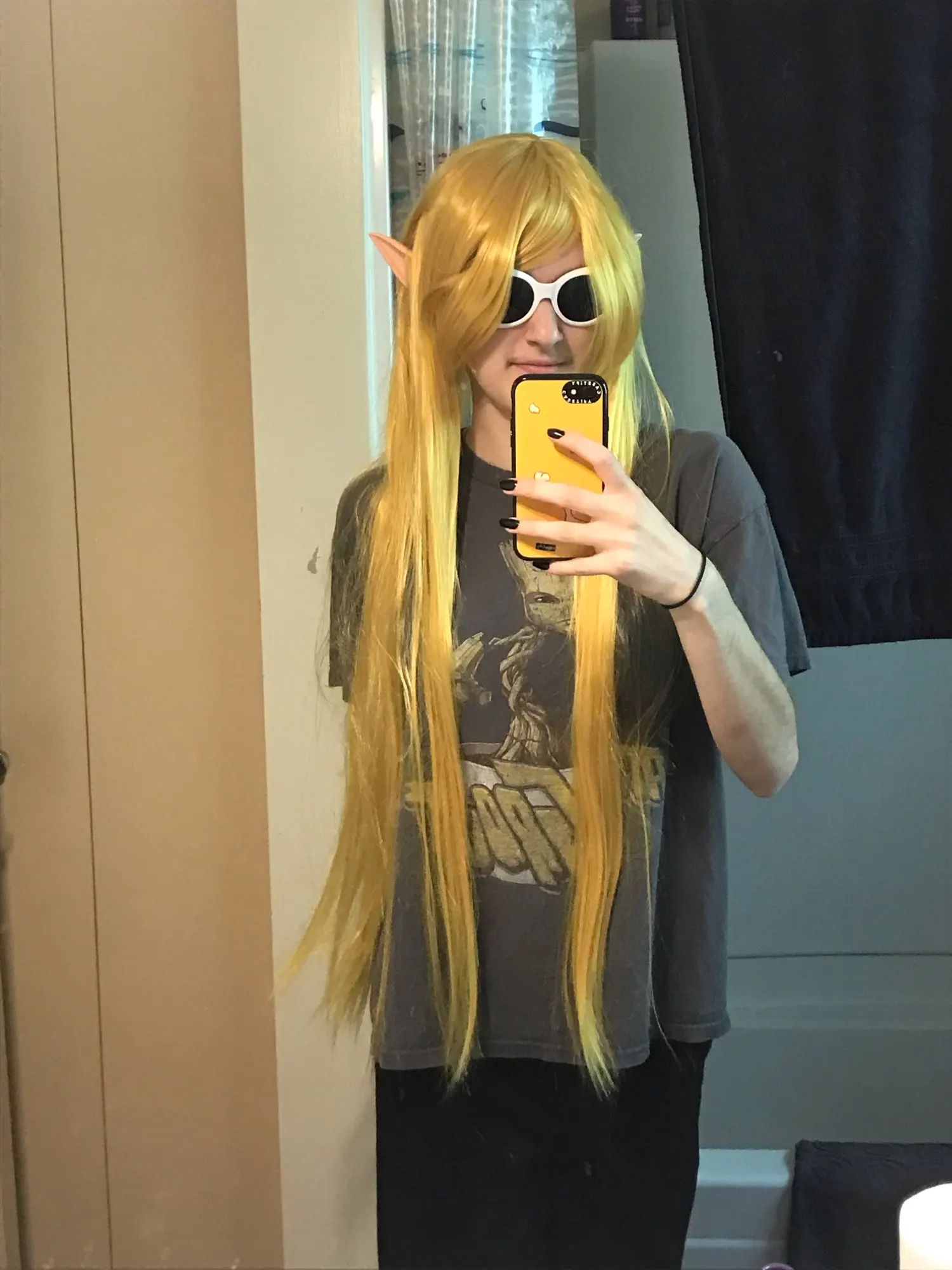 парик густой, волосы приятные на ощупь. челку, наверное, подрежу немного, мне длинновата и мешается. волосы нужно обработать антистатиком, ибо синтетика сильно электризуется, на кончиках внизу видно. ну и распределить аккуратно, а то я случайно выдернула 1 прядь, несмотря на то, что они довольно таки хорошо пришиты))