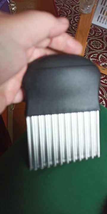 Острый нож. уже резала картошку, яблоко, перец, огурец, банан. Просто и красиво. пришла посылка быстро.