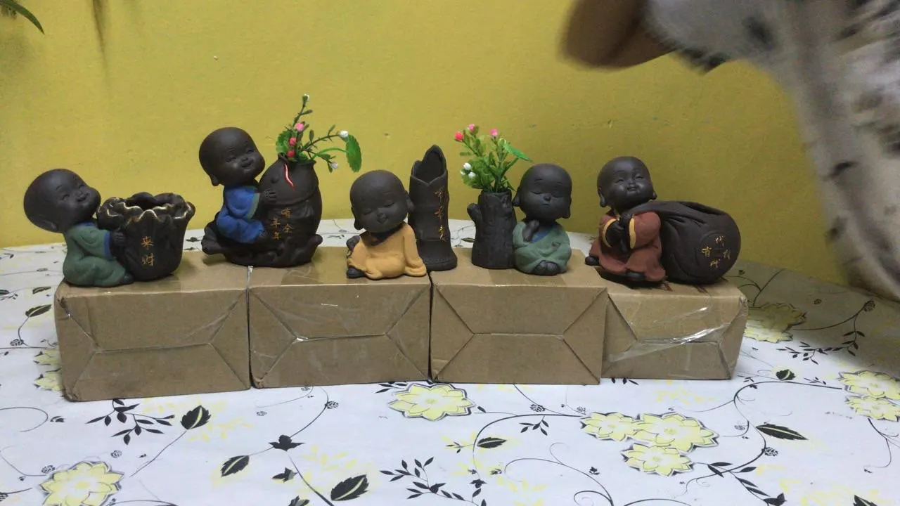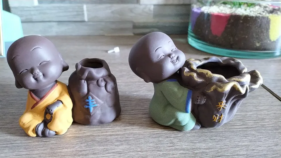 Керамическая статуя Будды для домашних животных, статуэтка монах, настольный цветочный горшок, украшение для растений, аксессуары для чая