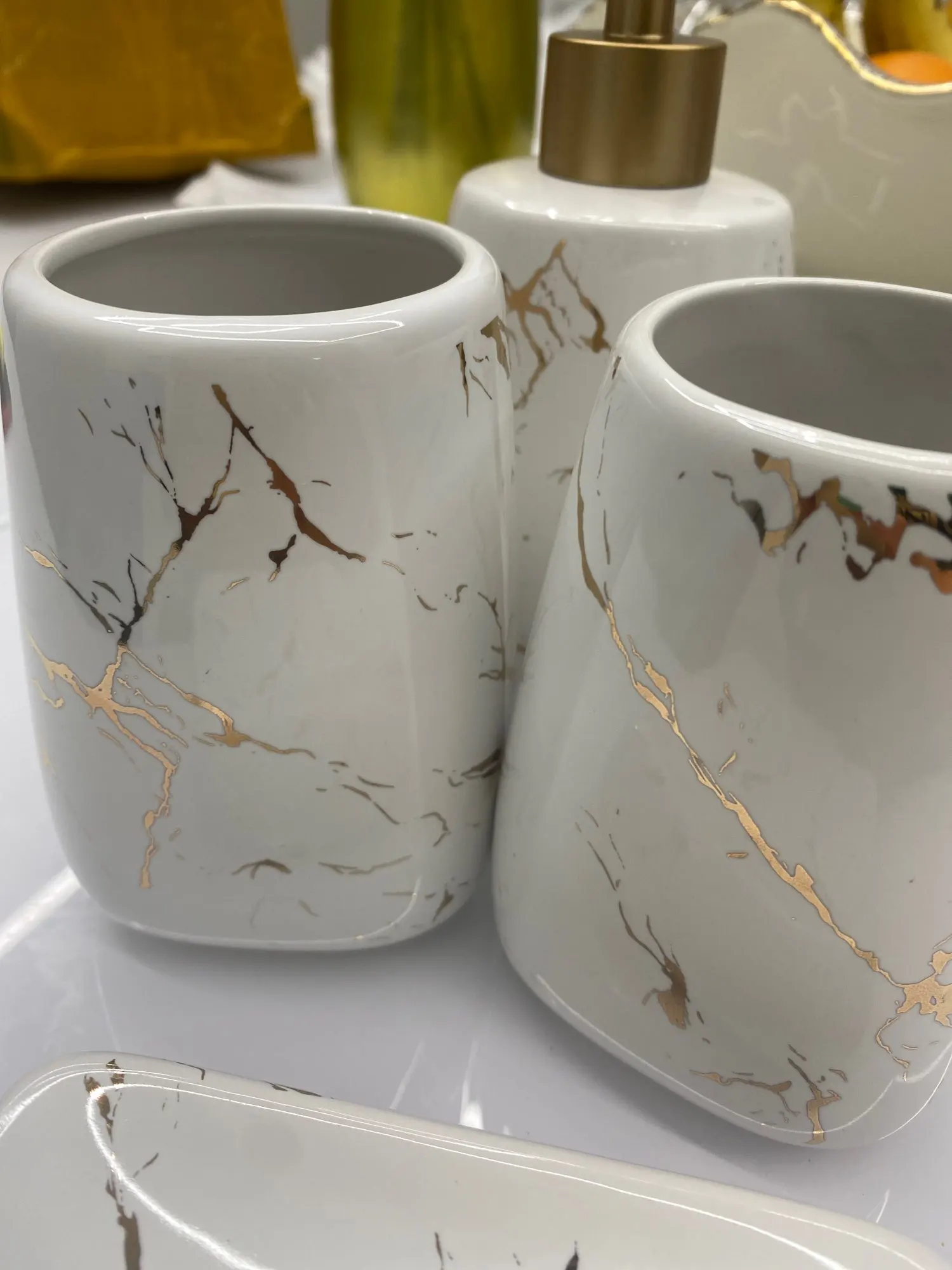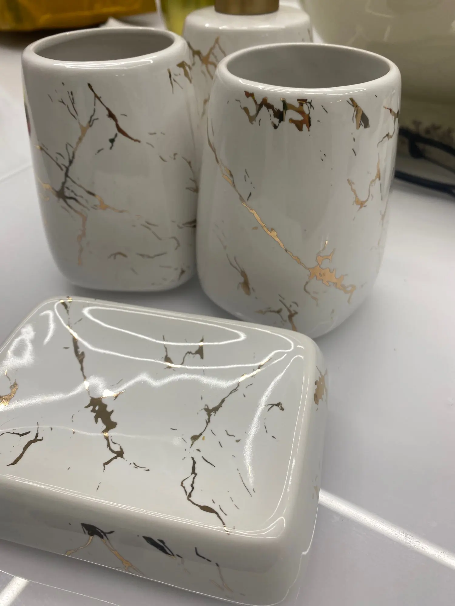 Керамический глянцевый мраморный набор аксессуаров для ванной комнаты, инструменты для мытья бутылки, чашка для полоскания рта, держатель для мыла, зубной щетки, лоток, набор для мытья дома, отеля