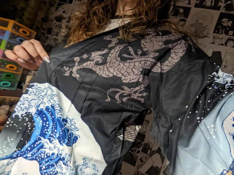 Отличное хаори, хорошего качества. Единственное но! рисунок чуть более расплывчатый, чем на картинке, также камера телефона делает его более резким, но и так хорошо. продавец отправил быстро, приехало тоже быстро
