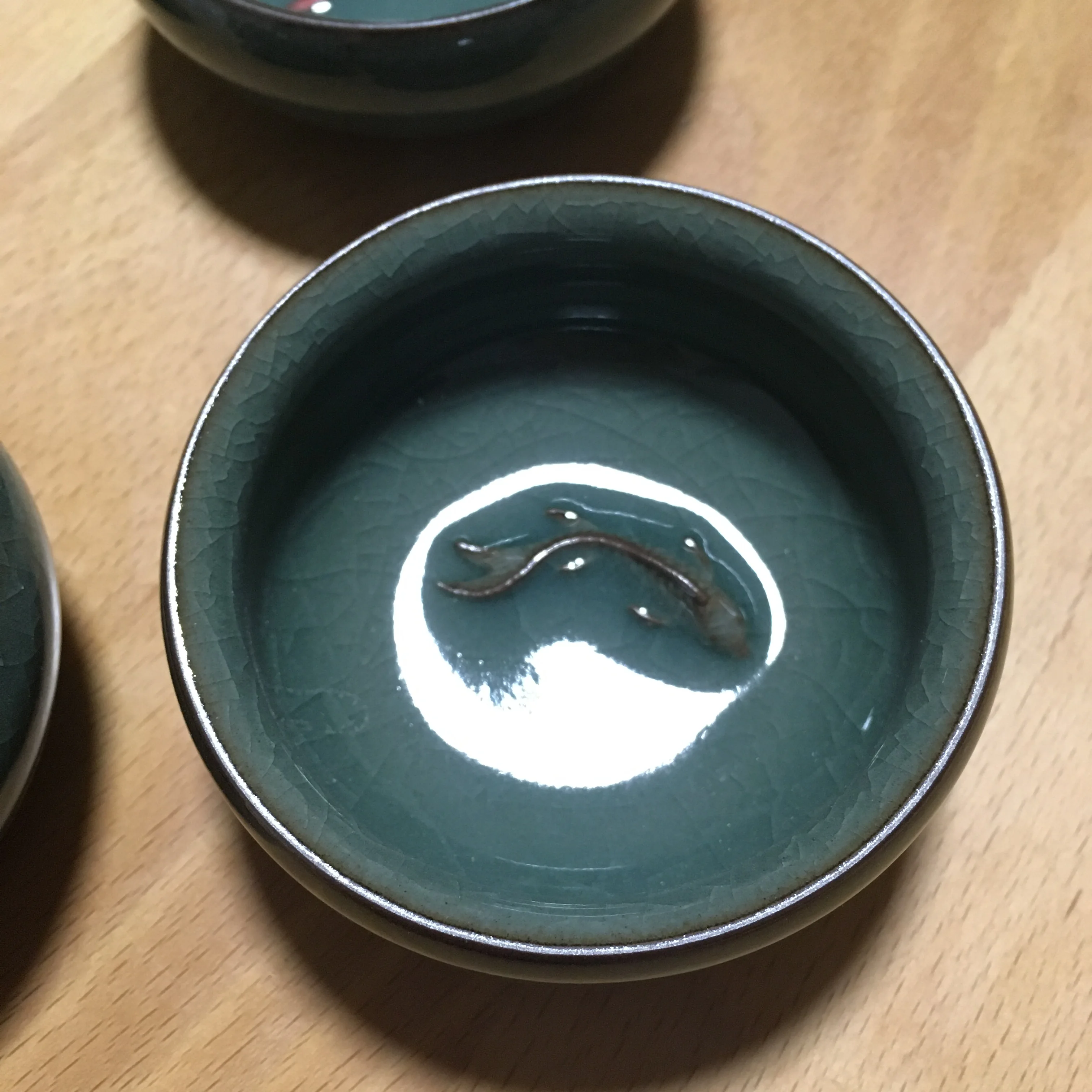 цвет оттенком различаются, чуть темнее одна, но так супер, на одной клеймо не так видно, на общий вид не влияет