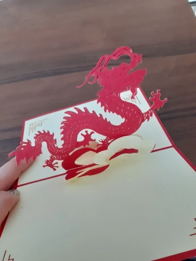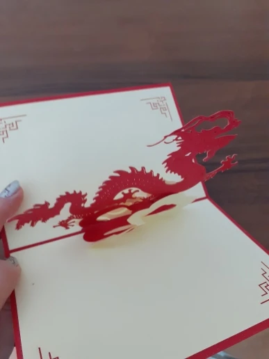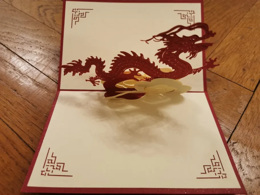 Китайская Новогодняя красная открытка ручной работы с 3D выдвижным драконом, поздравительная открытка с лазерной резкой, Подарочная открытка, праздничное украшение с конвертом
