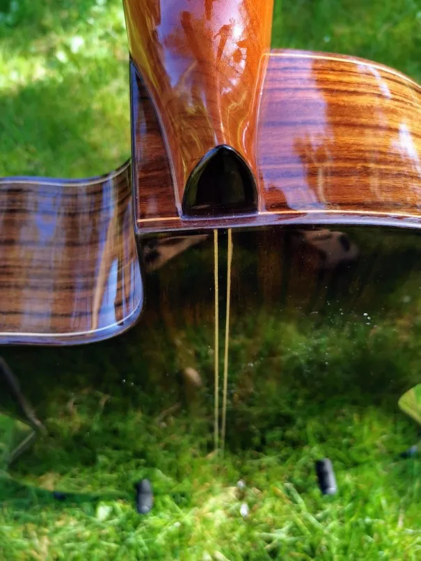 доставка до кемеровской области 1 месяц,звук тихий но глубокий,струны нейлоновые ,заказывали за 15 тысяч плюс 1,5 за таможню пришли к выводу что этих денег она не стоит т.к за эти деньги можно купить ямаху,железо ставить не рискнули побоялись сломать пятку,она просто приклеена.в комплекте шло два медиатора ,регулировочный ключ и струны ,написано дадарио-но по качеству очень далеко от дадарио.поставим нормальные струны дополним отхыв.