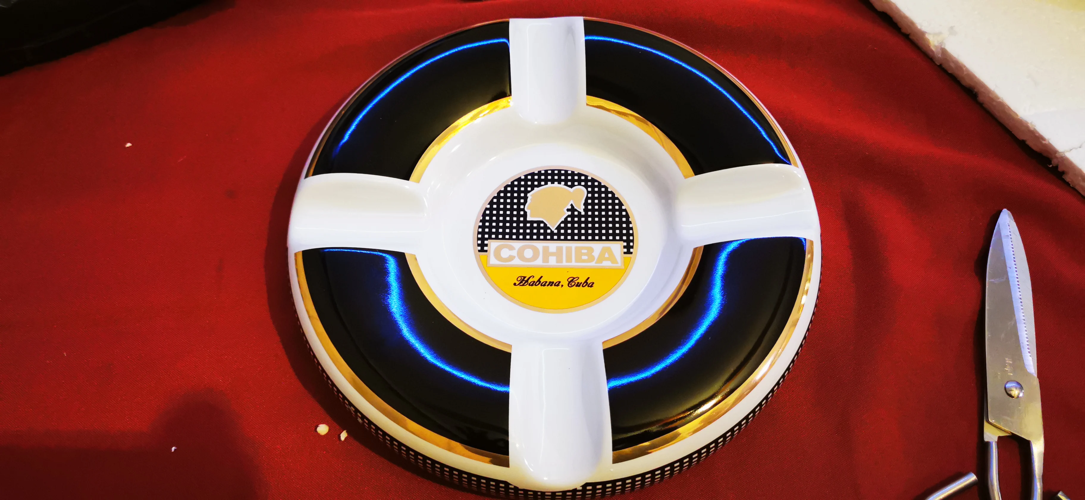 Классическая керамическая пепельница для сигар COHIBA, высокая четкость, модная, 4 держателя, большой размер, 245*245*40 мм, круглая пепельница для с...
