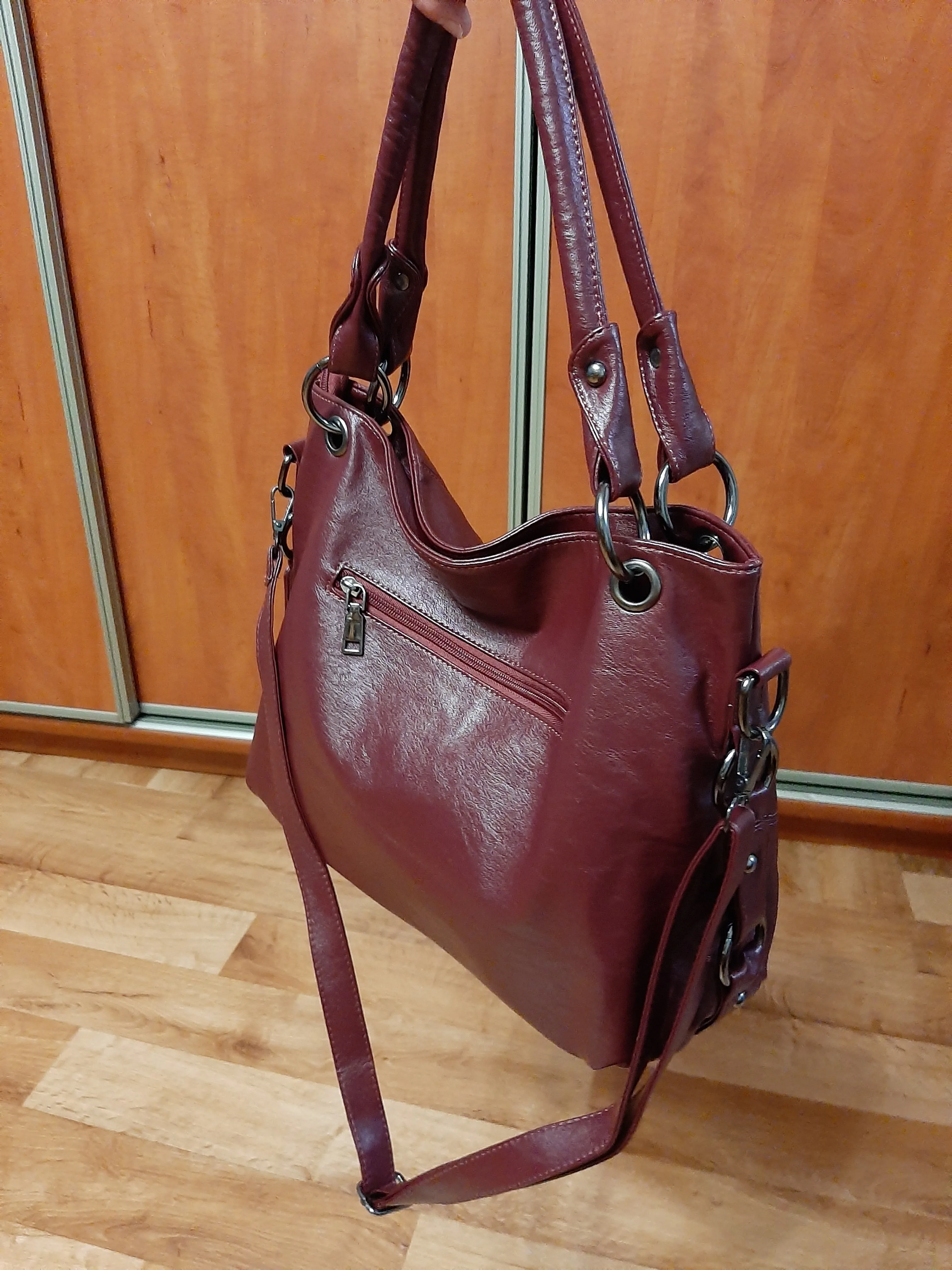 шикарная огромная сумка. зонтик просто утопает, размеры указанные продавцом верные. отлично все прошито, фурнитура работает. запах отсутствует. резиночка в подарок. доставка 2 месяца.