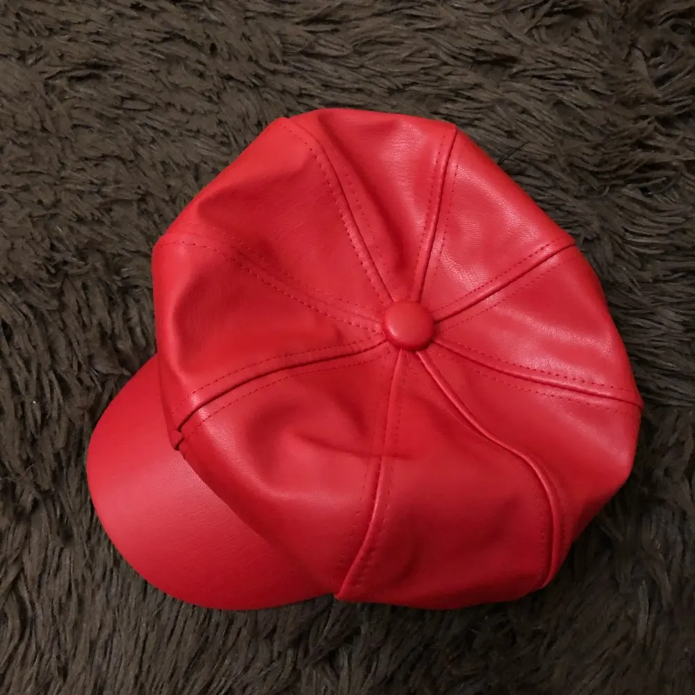 Классический кожаный берет HT1368 для мужчин и женщин, винтажные восьмиугольный берет художника газетчика, однотонные шапки для осени и зимы, черный, красный, серый
