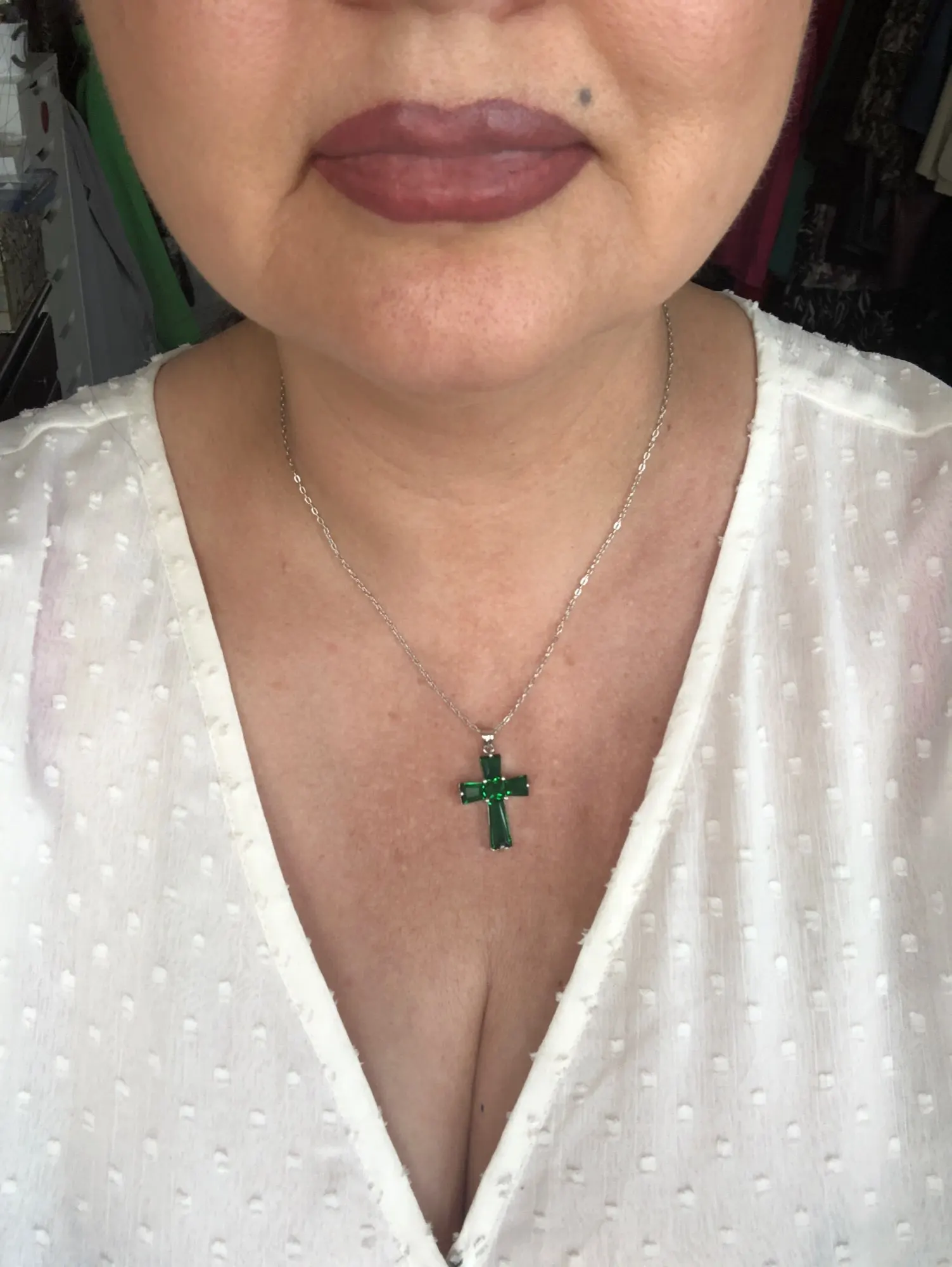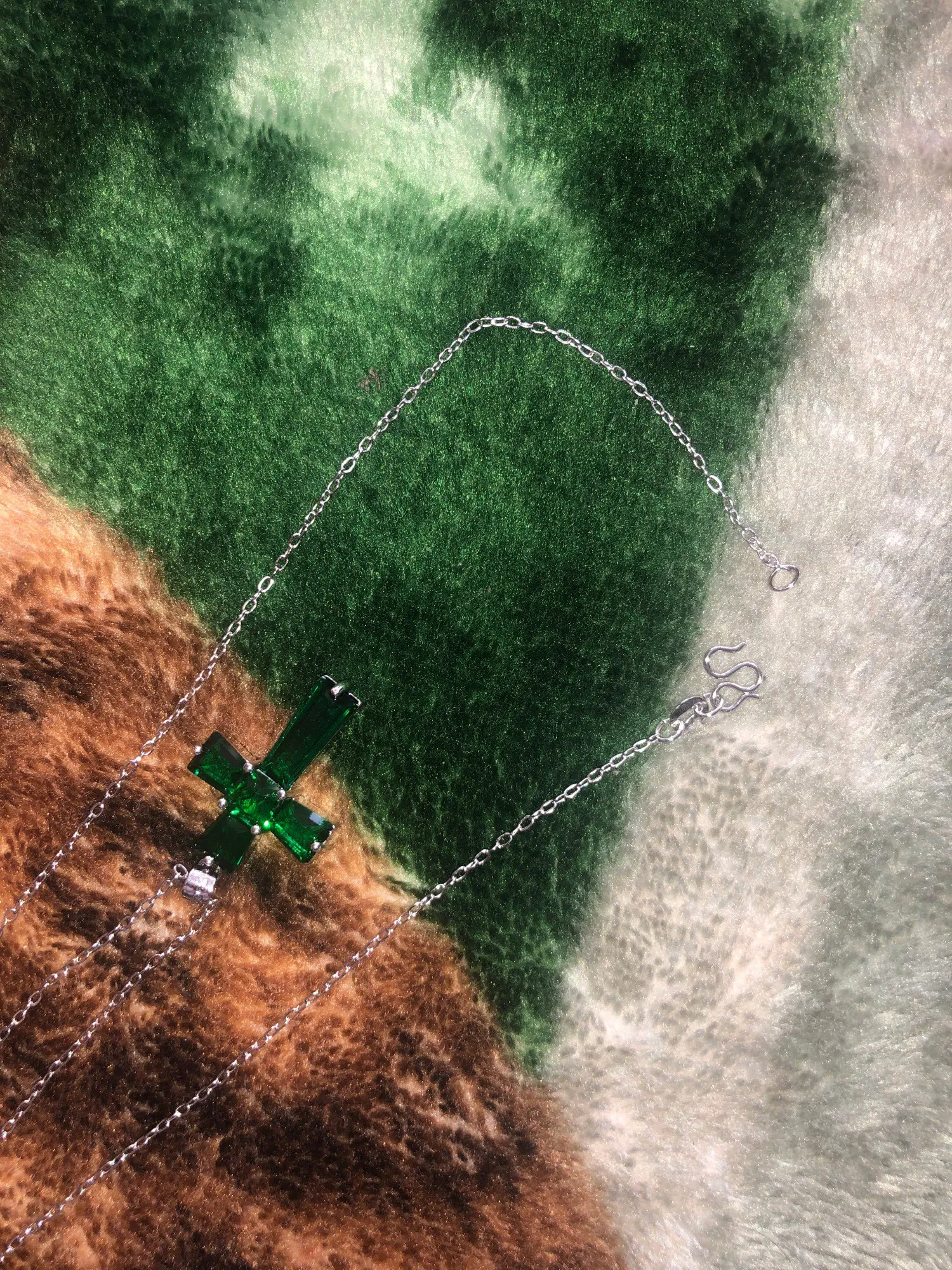 Классическое ожерелье с подвеской в виде креста, женское ожерелье с изумрудным камнем, модное ожерелье с распятием, женское ювелирное изделие, подарок