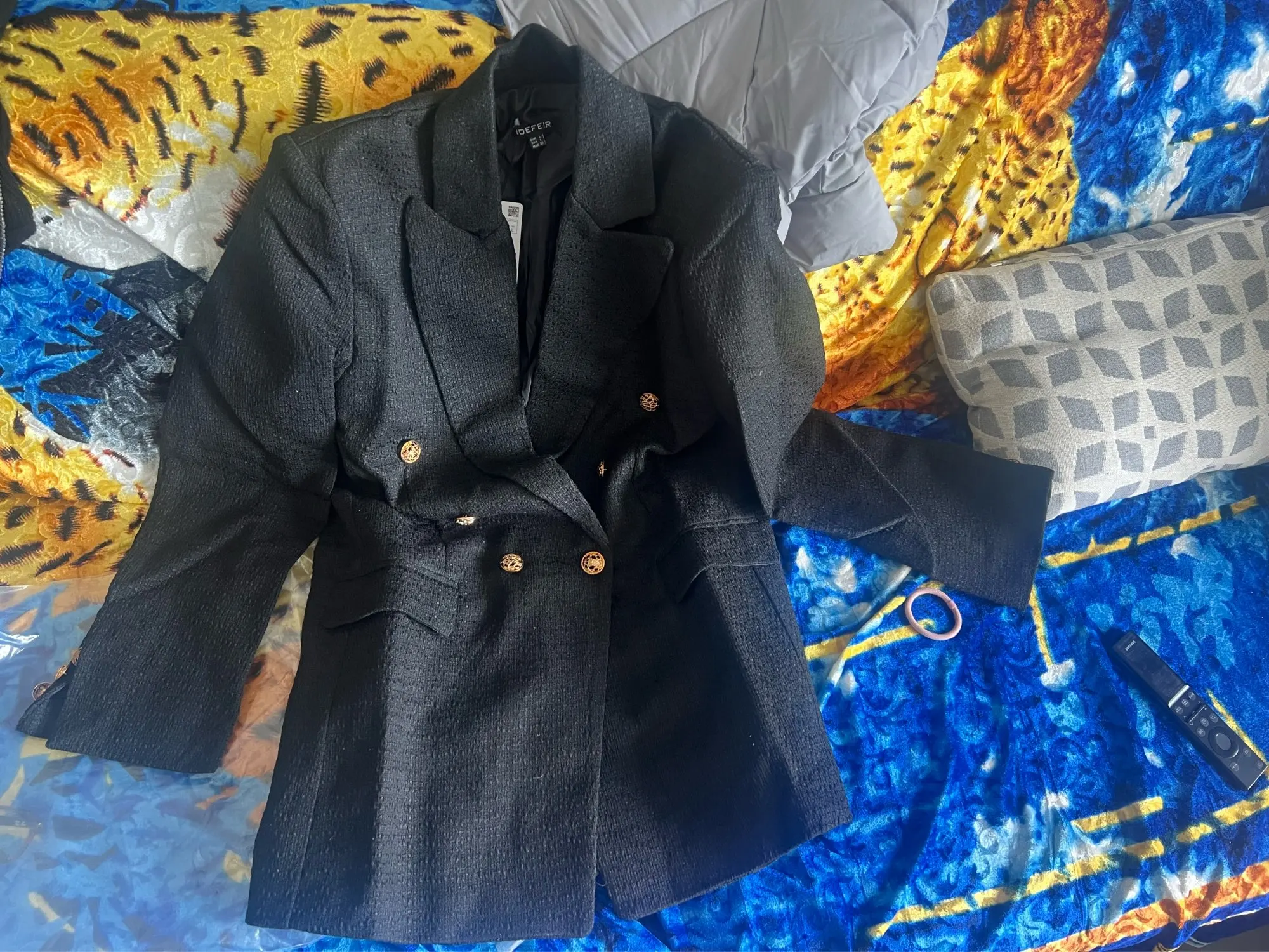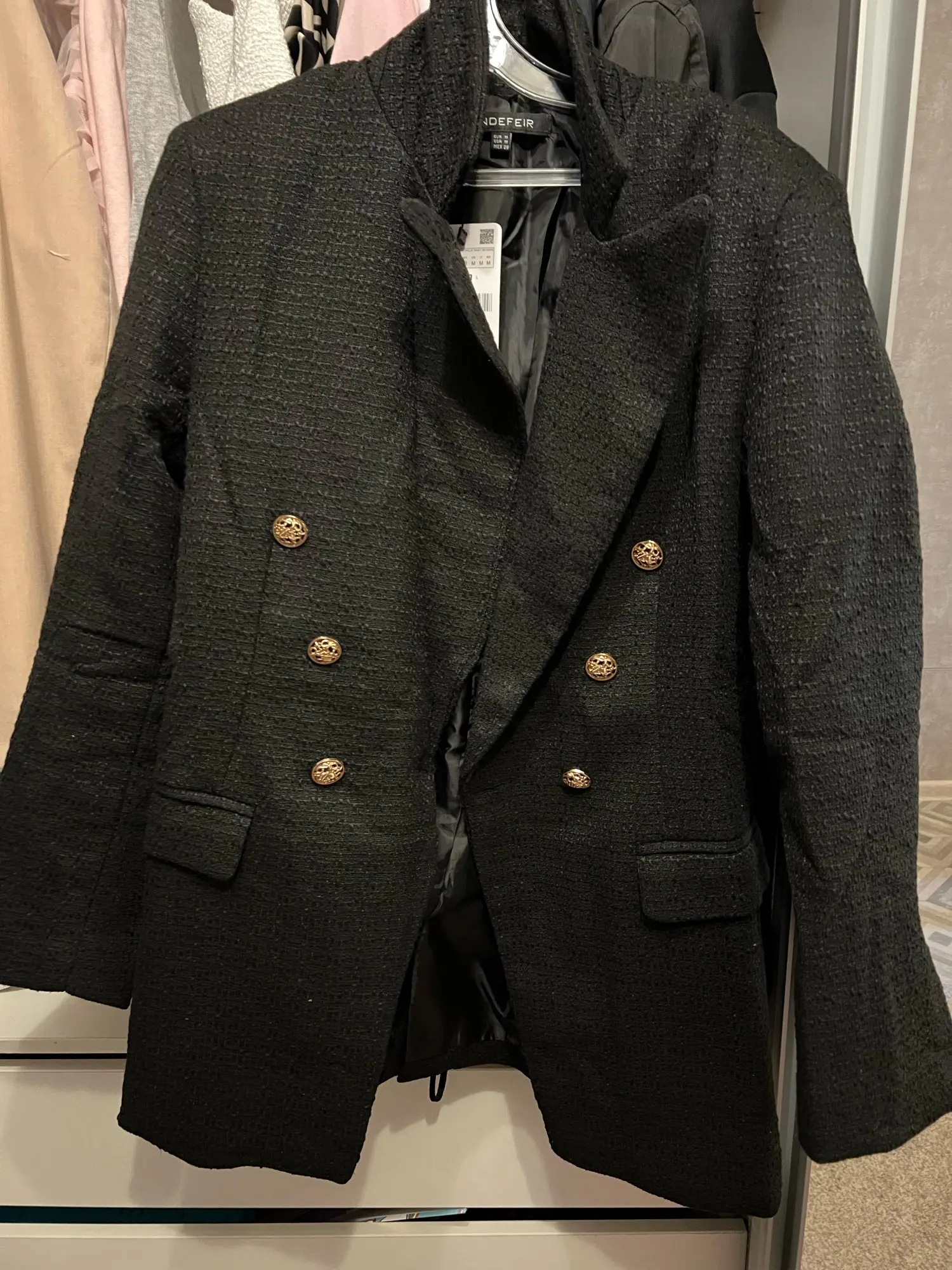 Пиджак супер качество! Запахов никаких нет, швы все ровные, выглядит отлично, на мой размер М заказала L, сел отлично!!! Рекомендую!