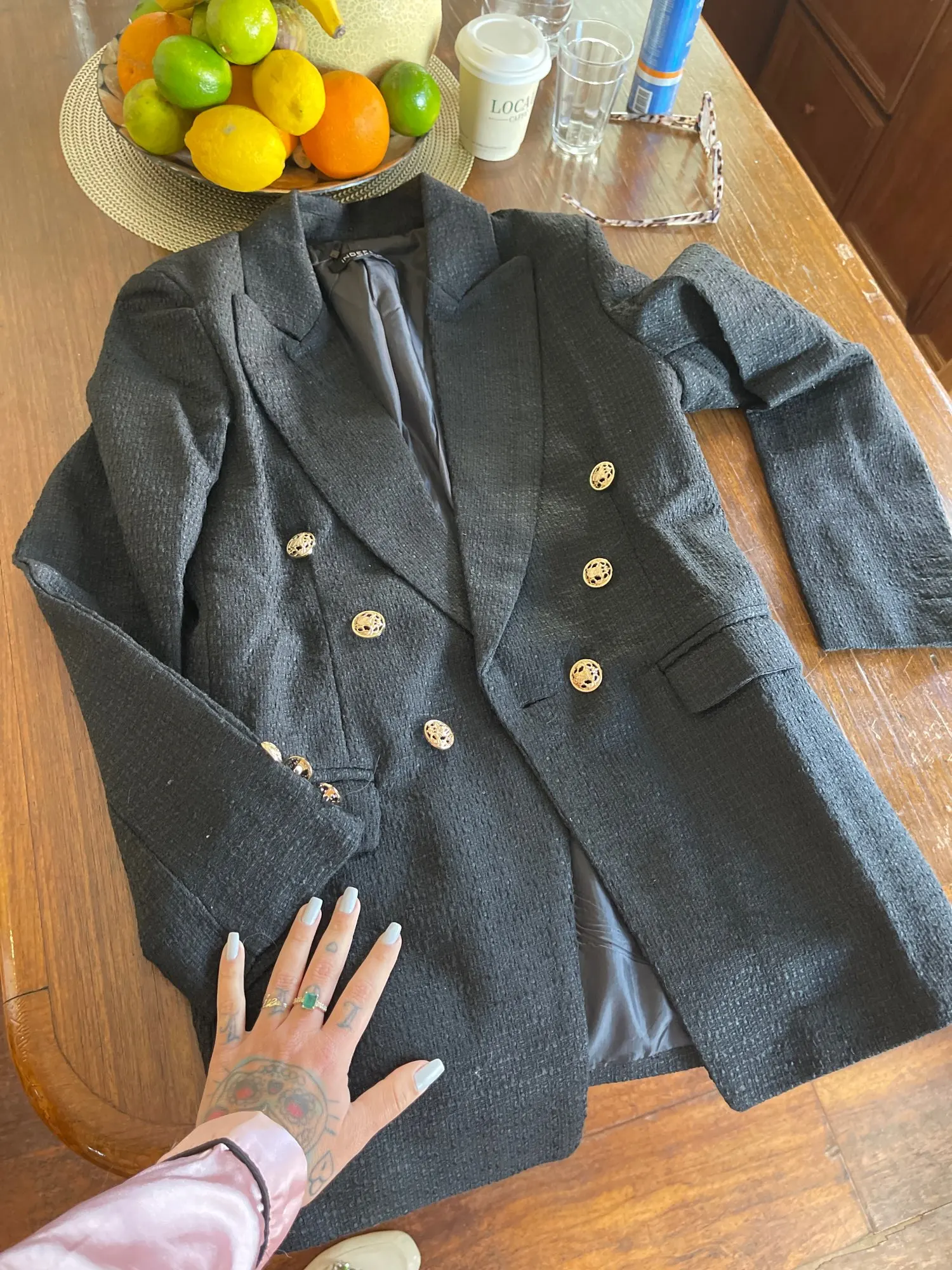 Ткань очень тоненькая, рукава короткие, пуговицы держатся просто на соплях. Он не оверсайз, а по фигуре с учетом моих параметров 80-60-90 и ростом 168 мне он маловат.