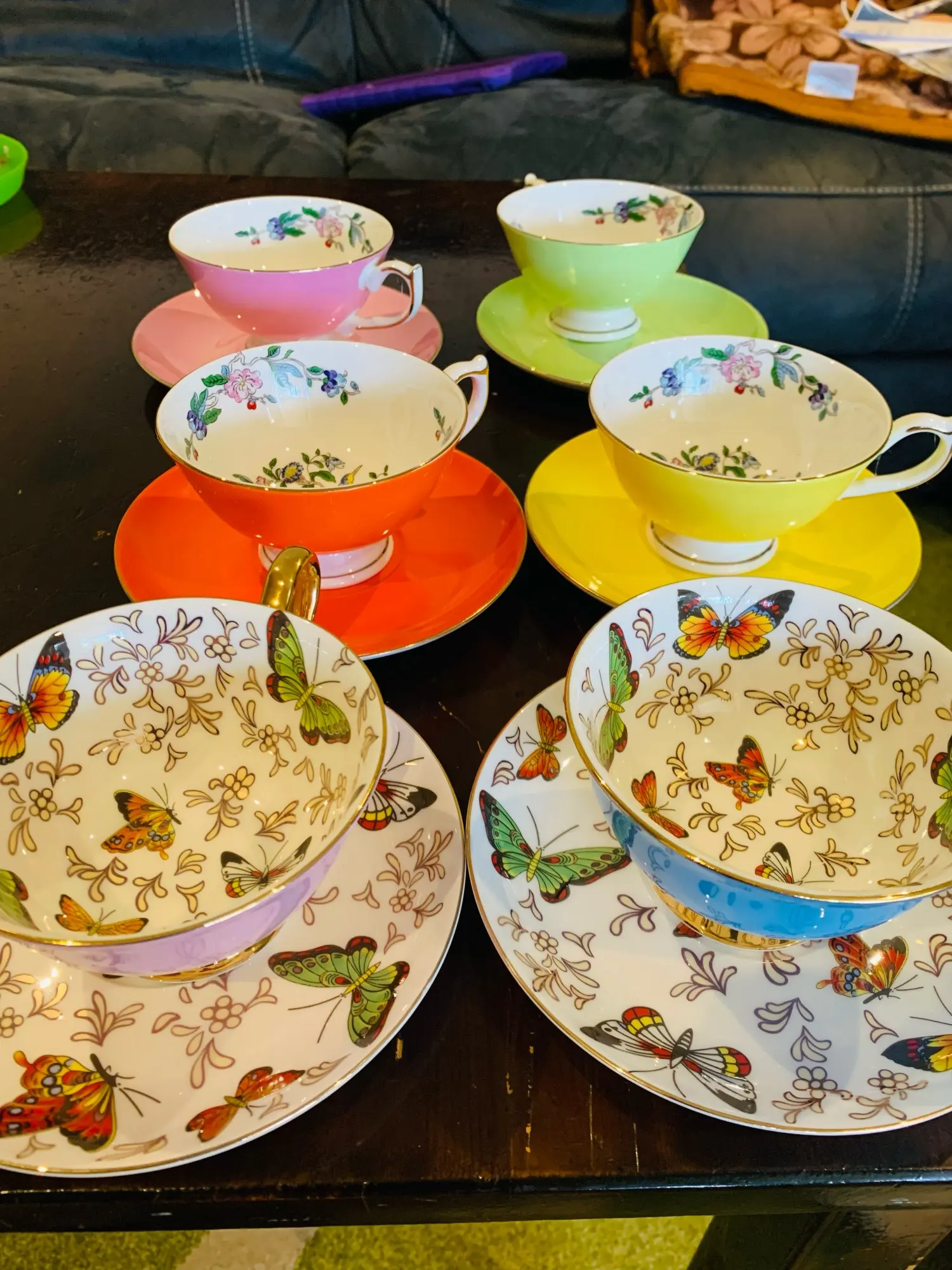 Кофейные чашки, фарфоровые высококачественные чайные чашки с бабочками и цветами, комплект блюдец, керамическая чашка в английском стиле для послеобеденного чая, Офисная посуда для напитков