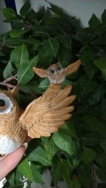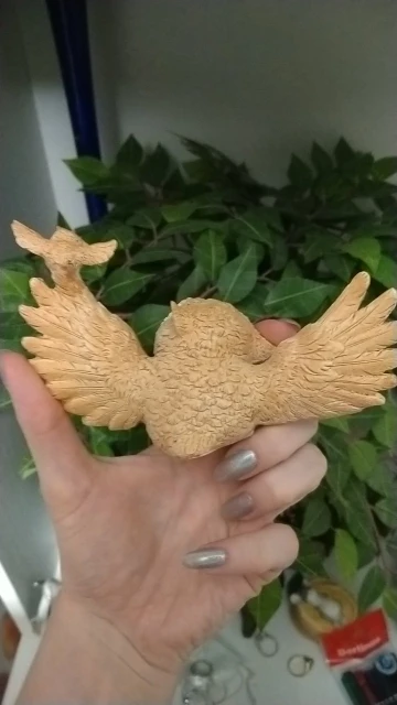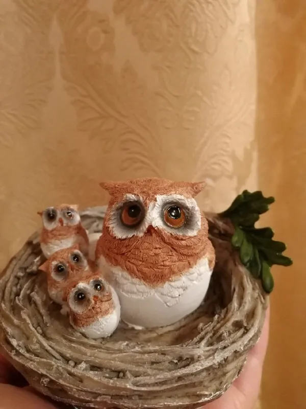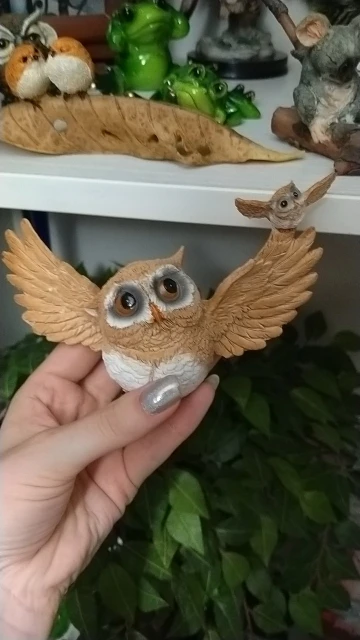 Красивая, довольно качественно сделанная сова. Жене должно понравиться, брал как раз для неё. Яркая краска, не воняет особо. Дошла коллективной посылкой в Украину довольно быстро, недели за 2. Упакована надёжно в пенопласт, совсем не пострадала. Советую, в общем.