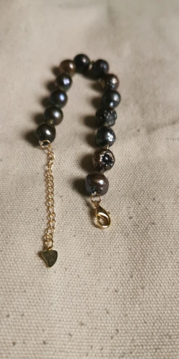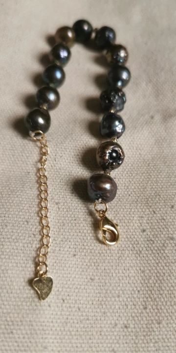Кольцеобразный браслет с натуральным жемчугом и застежкой в виде сердца