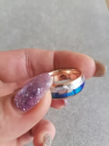 Хорошее кольцо, идёт в размер, стоит гравировка, что это вольфрам, сверху наверное залито эпоксидной смолой, качество не плохое, аллергии нет. пока все нравиться, месяца 2 ехало.