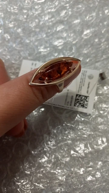 Кольцо SOKOLOV из золочёного серебра с янтарём (пресс.)