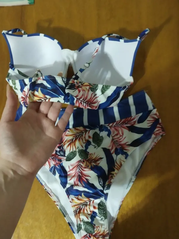 У купальника отличное фабричное качество - ровные швы, отсутствие торчащих нитей и дефектов, приятная к телу ткань. Купальник имеет раздельный фасон, лиф с поролоновыми чашками и трусики с завышенной талией. Идеально подойдёт на отдых и для красивых фото. На параметры 83-64-91 и рост 173 купальник в размере M сел идеально! Рекомендую к покупке!