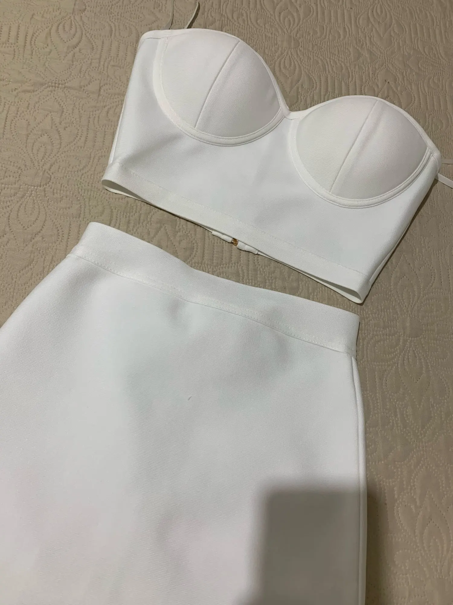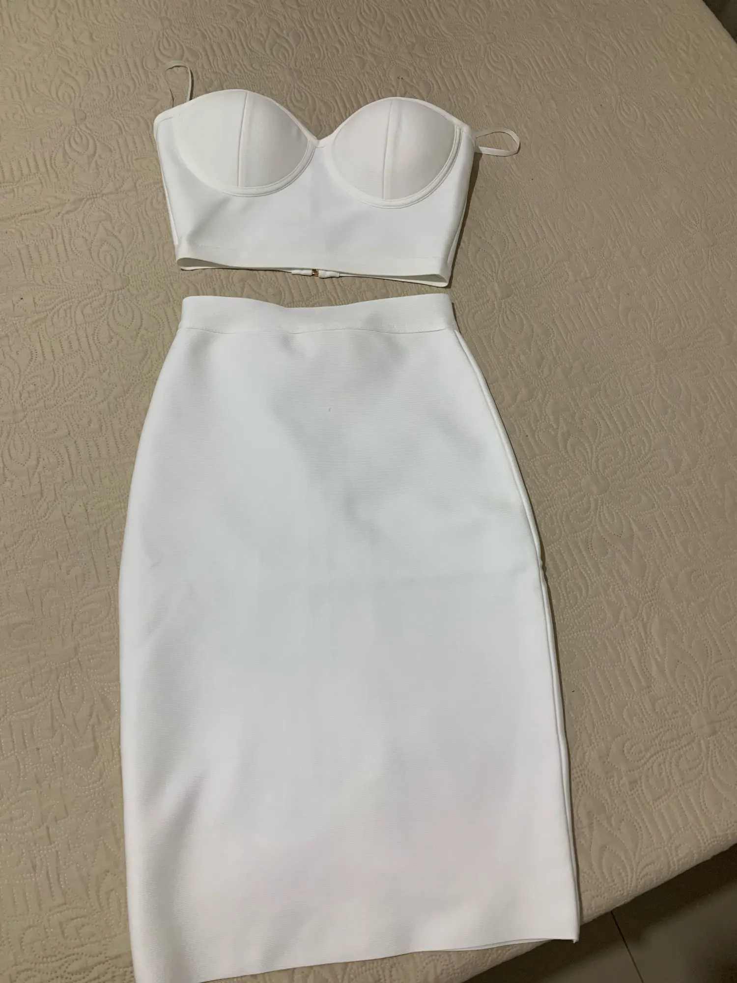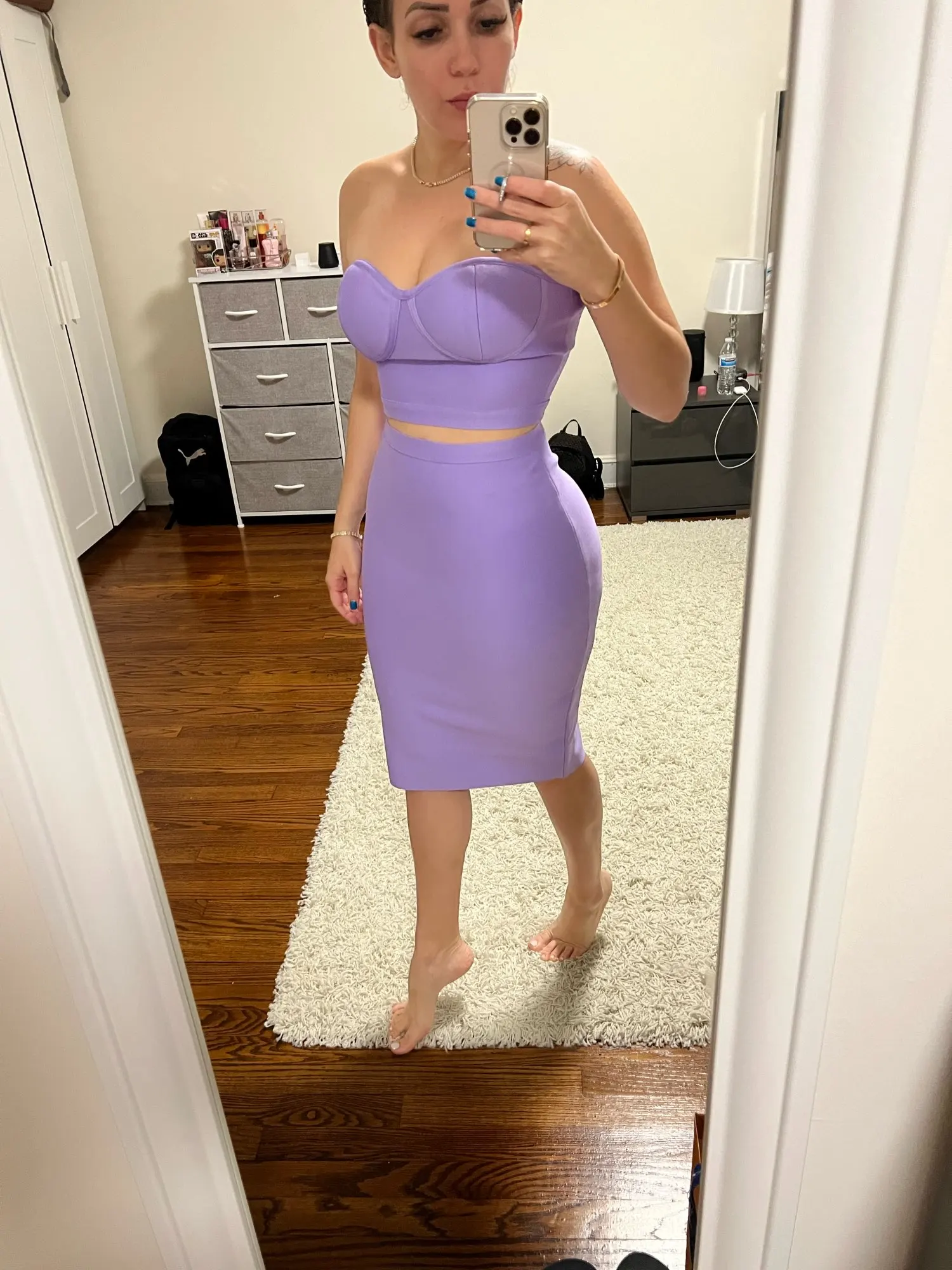 Комплект из двух предметов наивысшего качества фиолетового цвета для знаменитостей, без бретелек, до колен, из вискозы, Бандажное платье, ко...