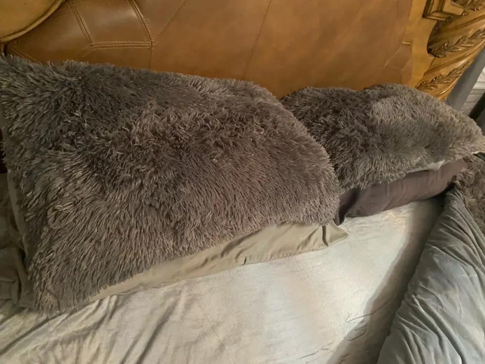 Я разочарована, очень низкосортный товар, весь этот длинный ворс ужасно лезет!!! Пришёл комплект в рваном мешке.
