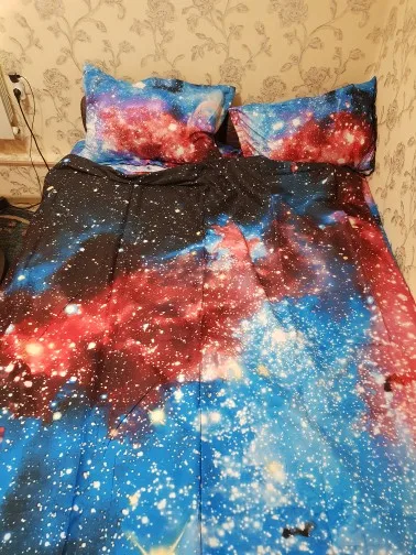 Приехала до Сочи за 3,5 недели. Товар соответсвует описанию, даже картинка такая же, как на фото) правда не полностью, а центральная часть. Рисунок хороший, хотя качество изображения конечно не идеальное, но цвет яркий и красивый. Качество хорошее. Хотя не самый приятный хлопок, но и не явная синтетика. И размер соответсвует описанию. В целом я доволен. Посмотрим как будет спать в нём.